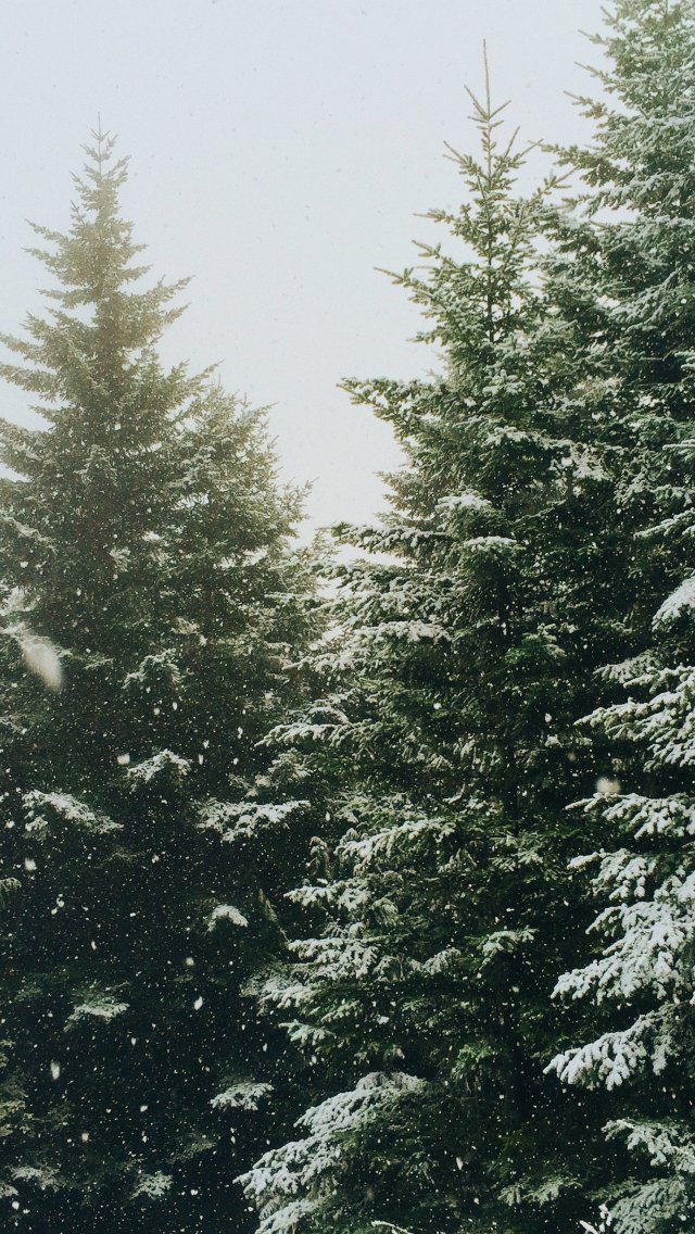 Обои: ель, снегопад, зима - 640x1136