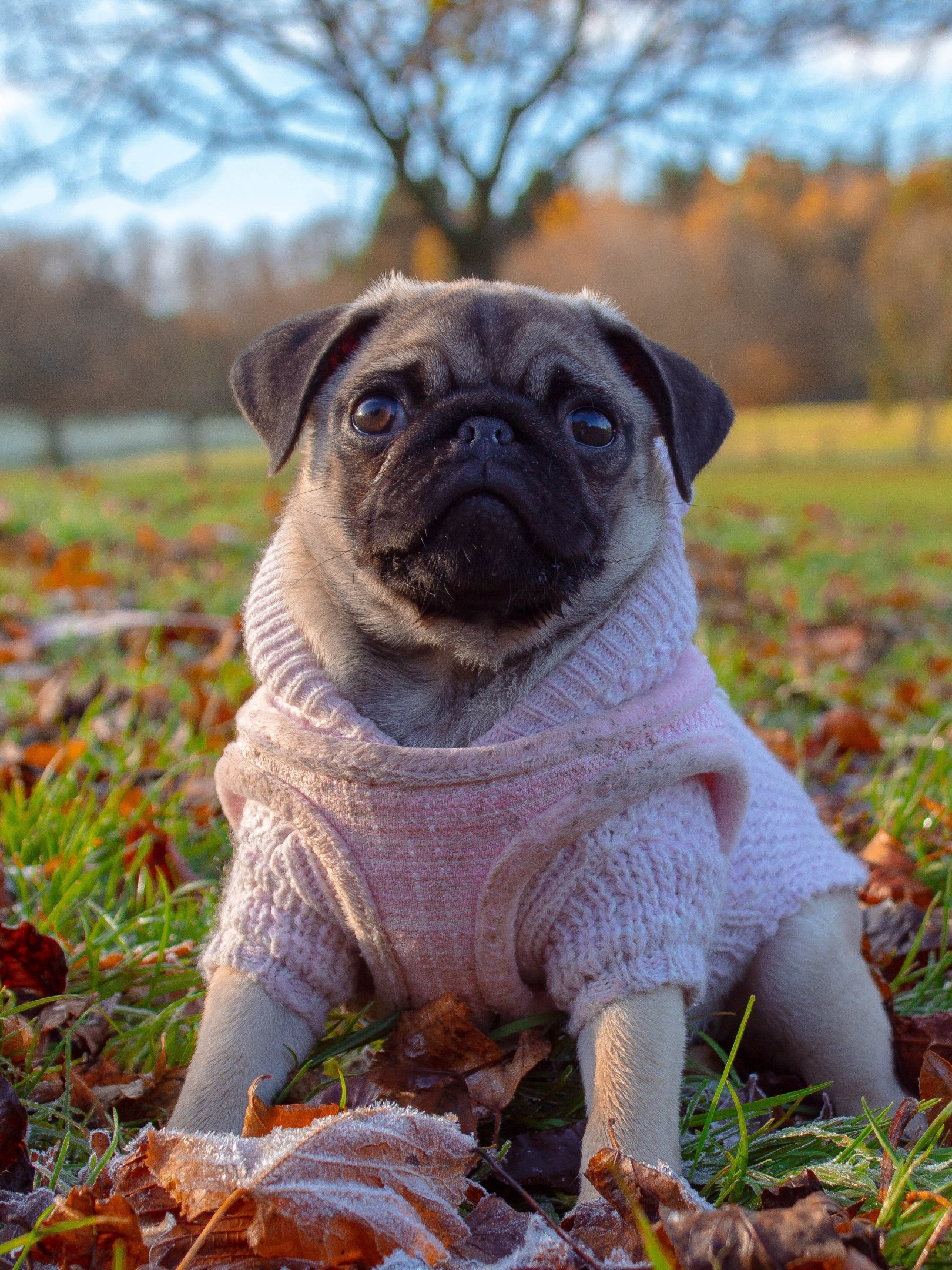 Обои: мопс, осень - 1620x2160