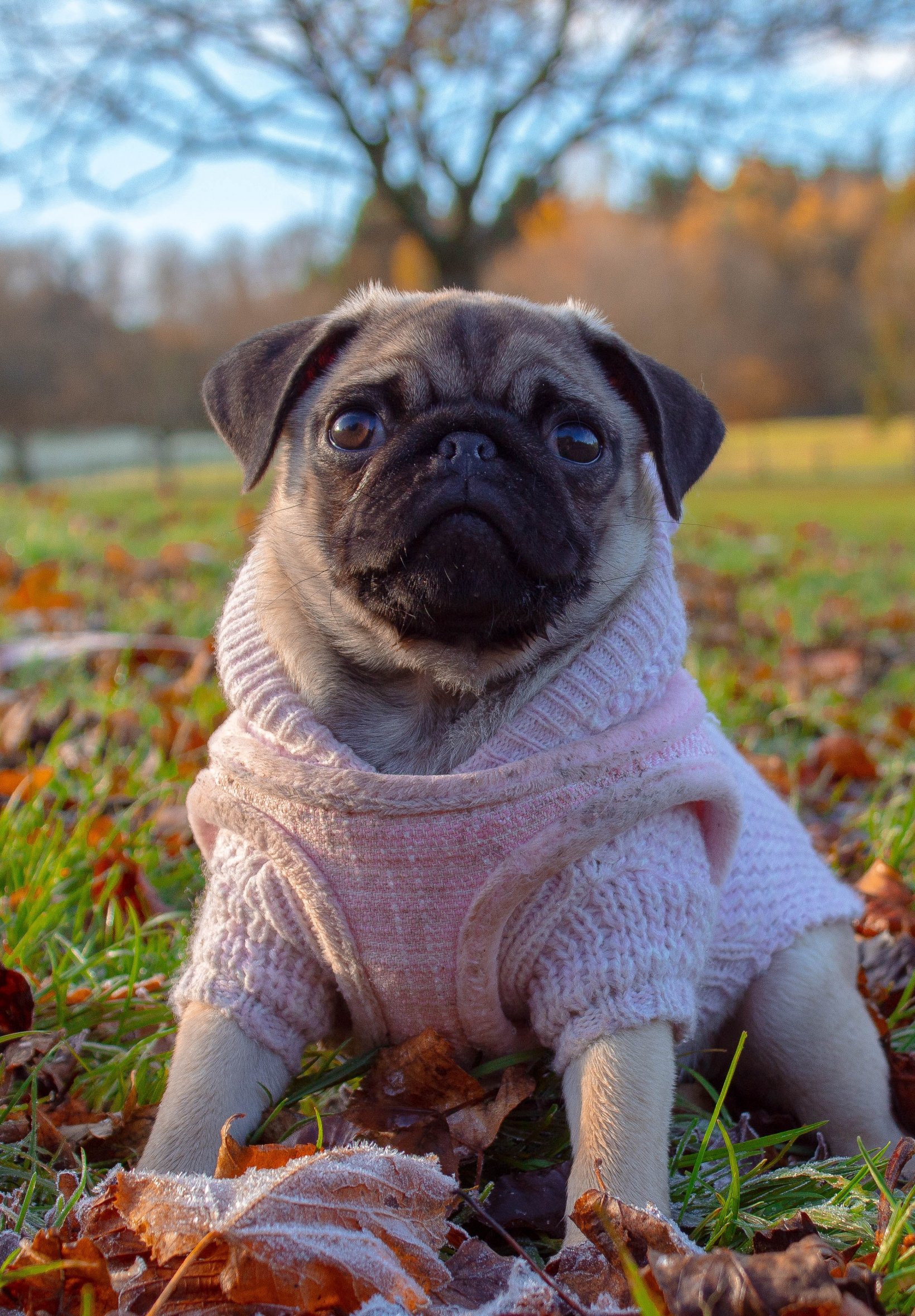 Обои: мопс, осень - 1640x2360