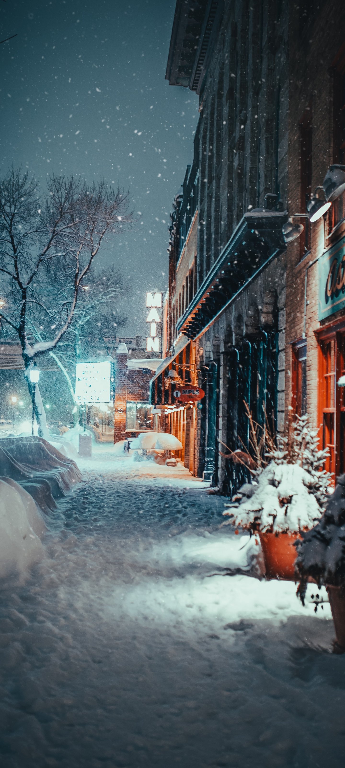 Обои: улица, снегопад, зима - 1440x3200