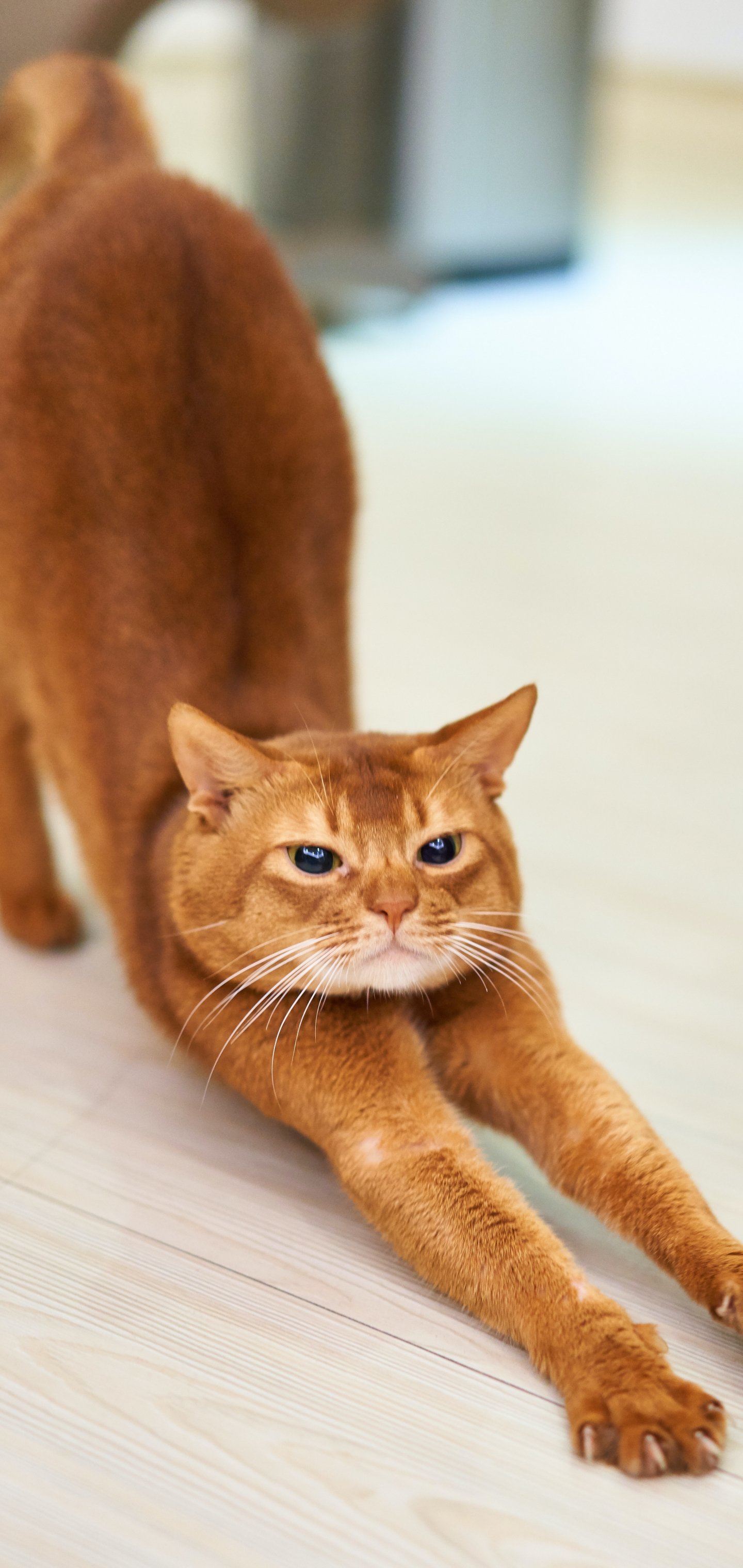Обои: кот, рыжий, потягиваться - 1440x3040