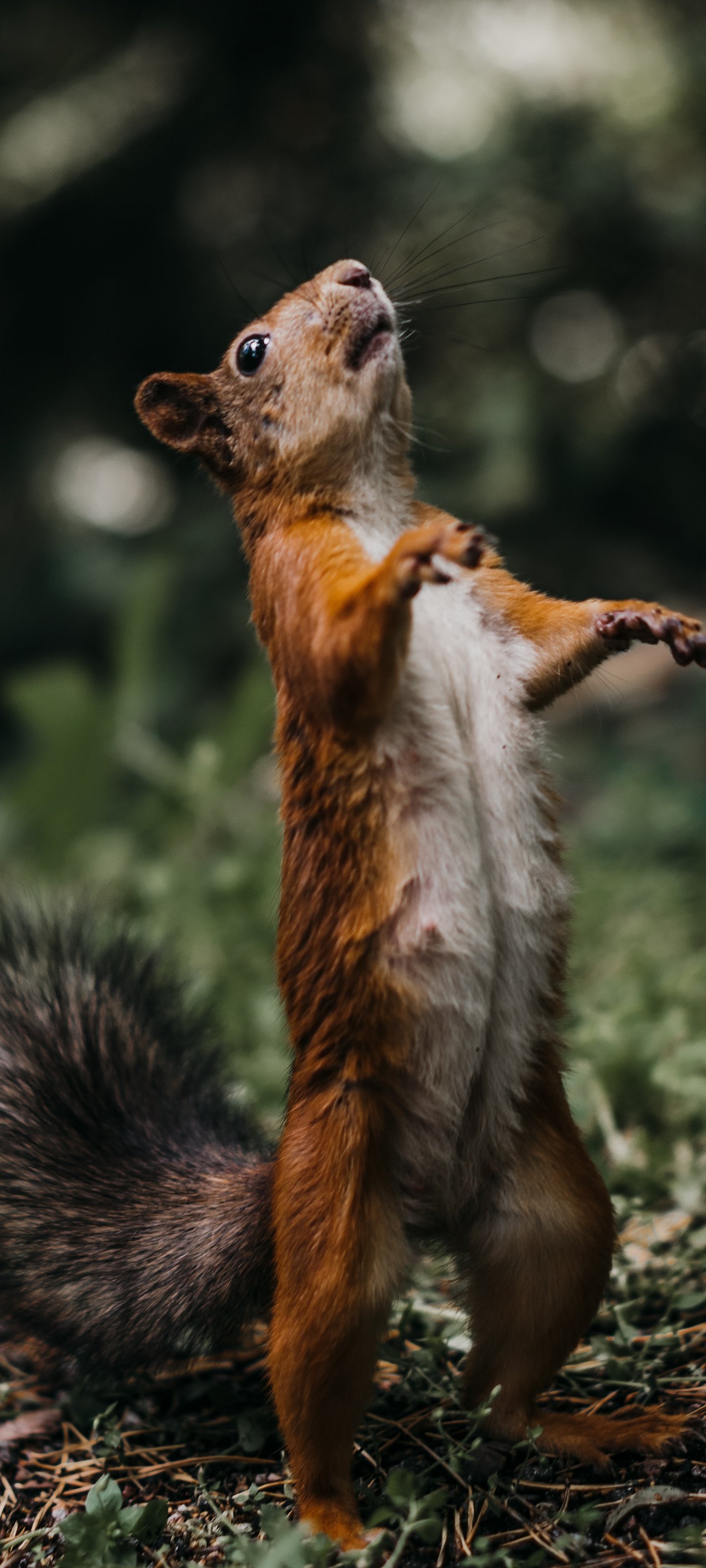 Обои: белка, стоит, рыжий - 1440x3200