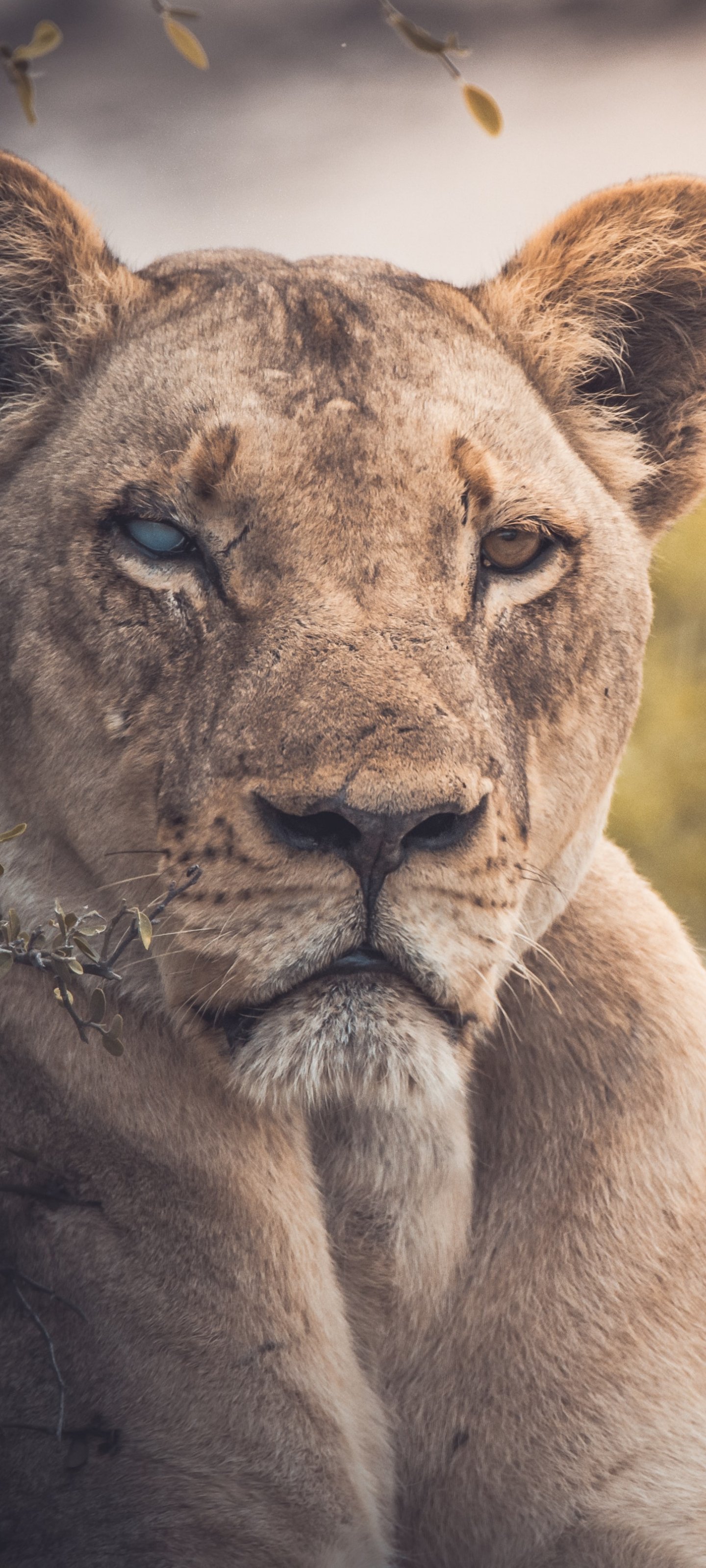 Обои: львица, взгляд, шрам - 1440x3200