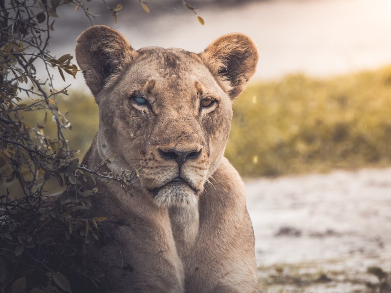 Обои: львица, взгляд, шрам - 800x600