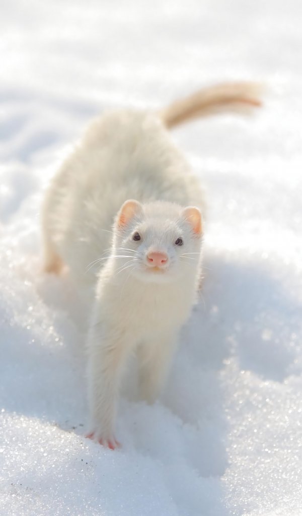 Обои: ласка, зима, взгляд - 600x1024