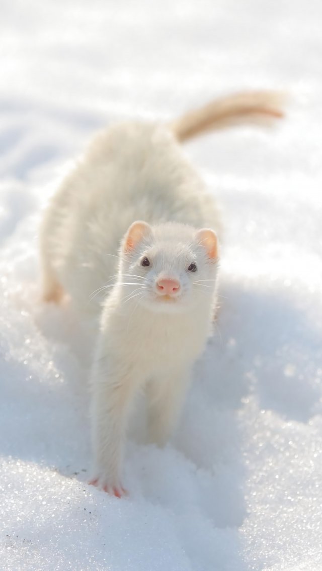 Обои: ласка, зима, взгляд - 640x1136