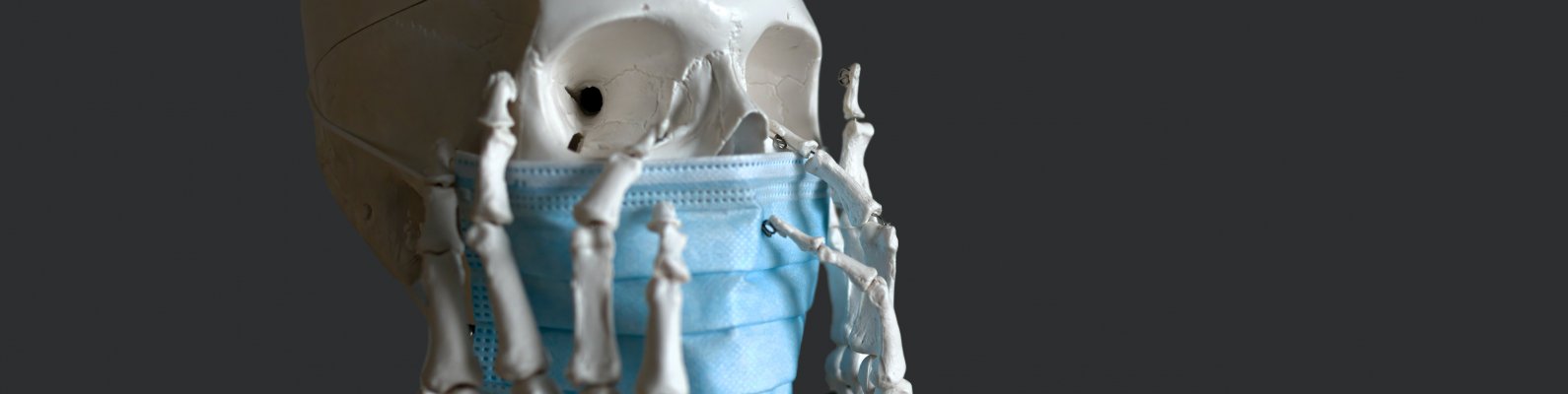 Обои: скелет, маска, вирус - 1590x400