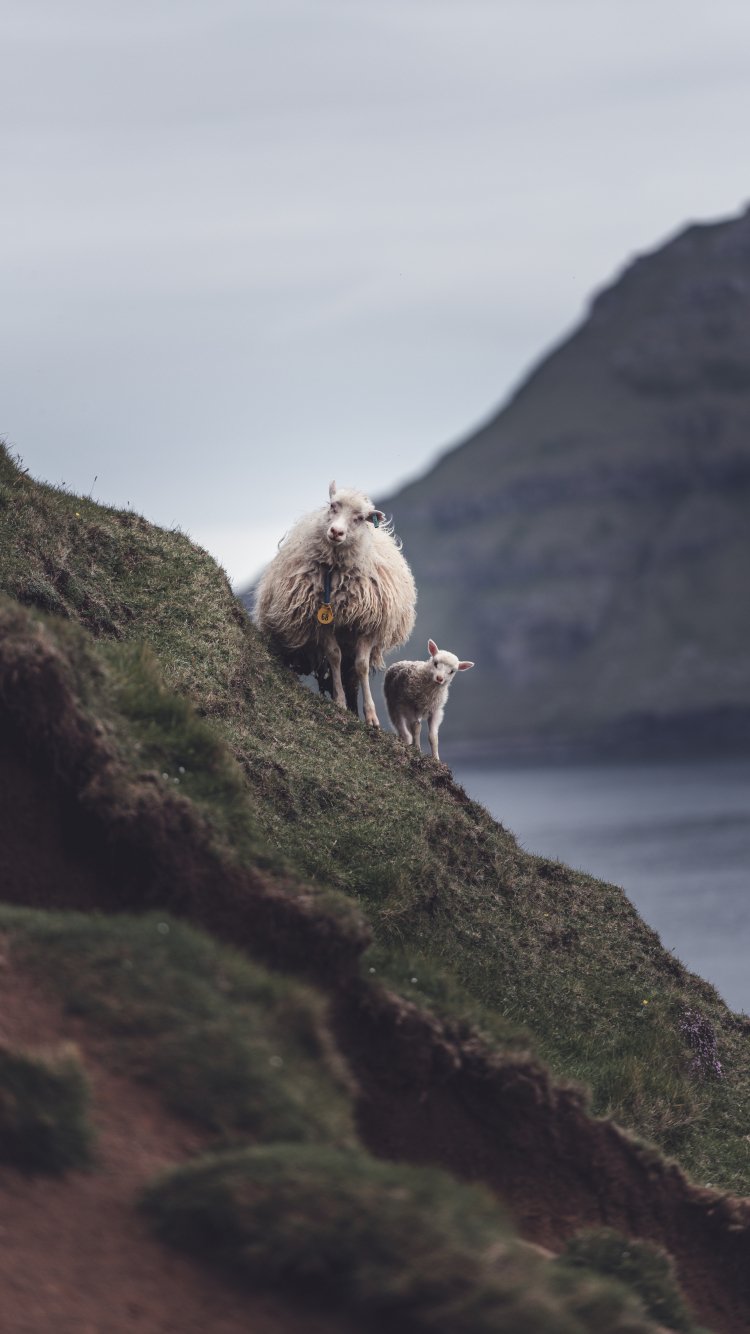 Обои: горы, овца, ягненок - 750x1334