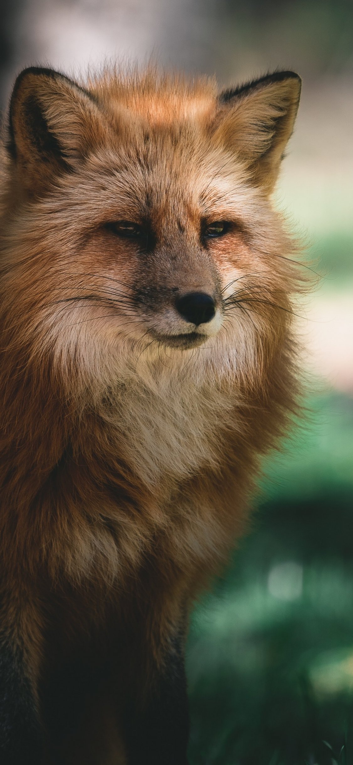 Обои: лиса, рыжий, зеленый - 1125x2436