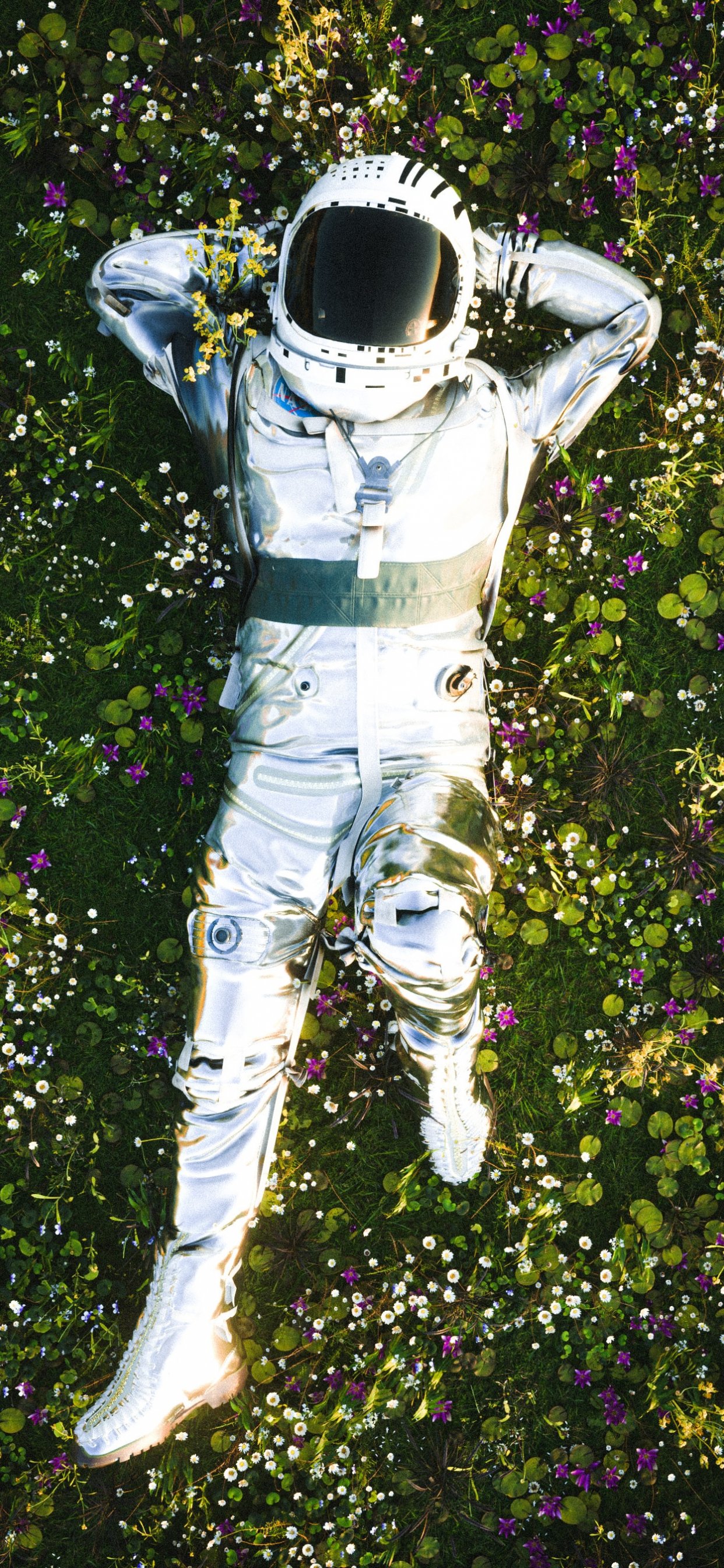 Обои: космонавт, трава, отдых - 1242x2688
