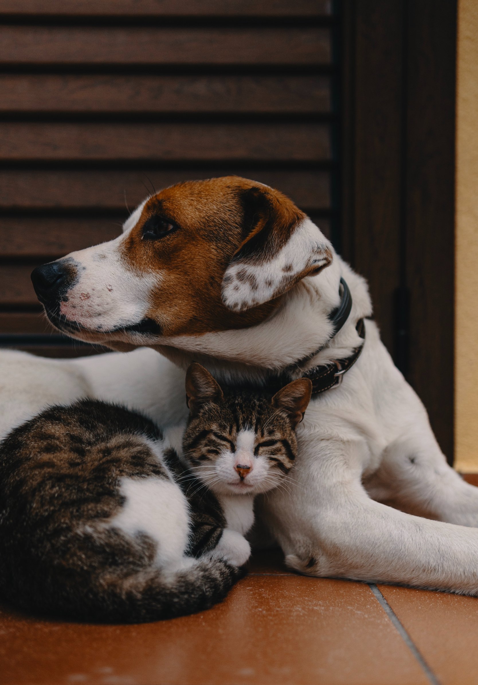 Обои: дружба, кот, собака - 1668x2388