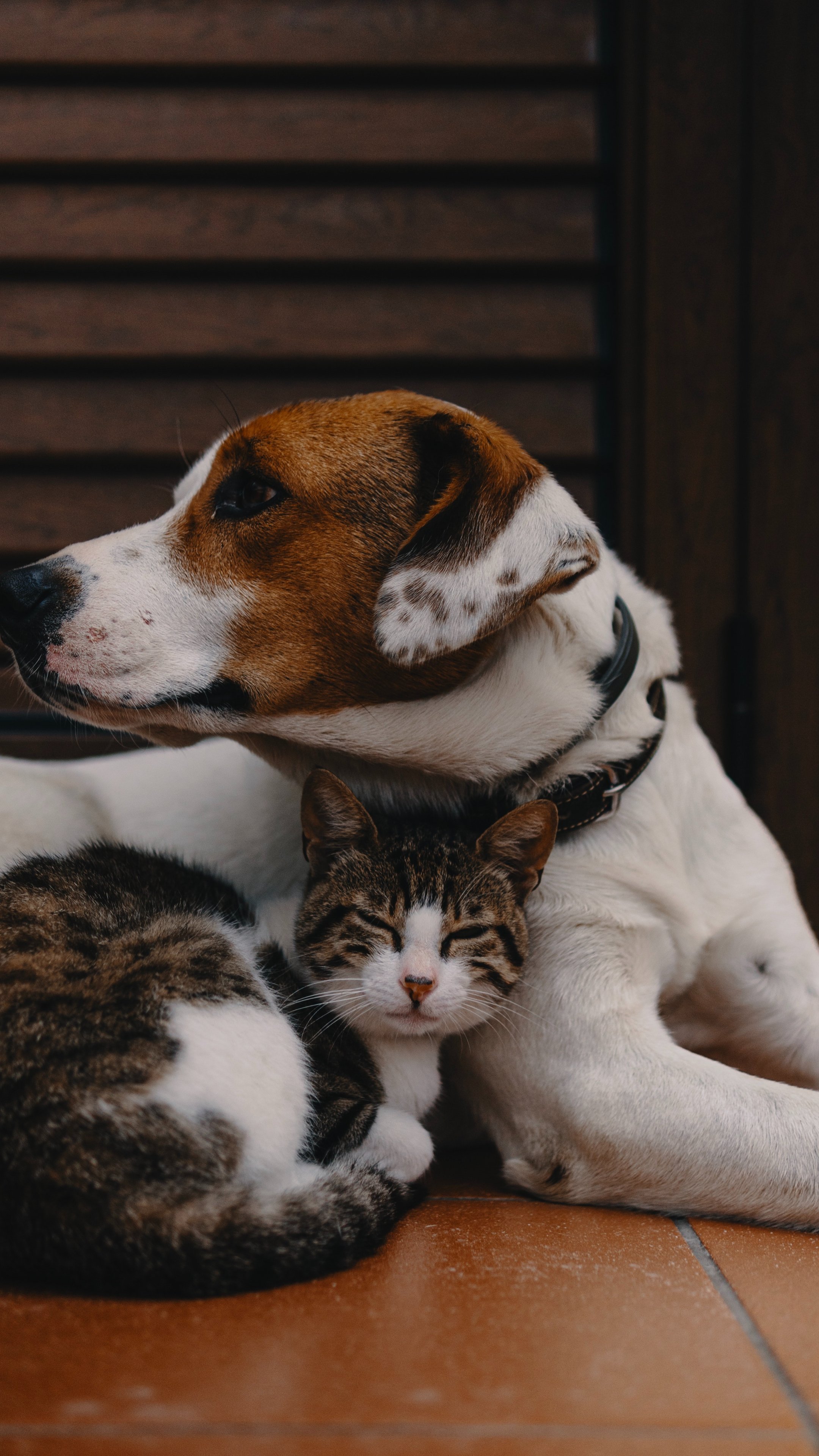 Обои: дружба, кот, собака - 2160x3840