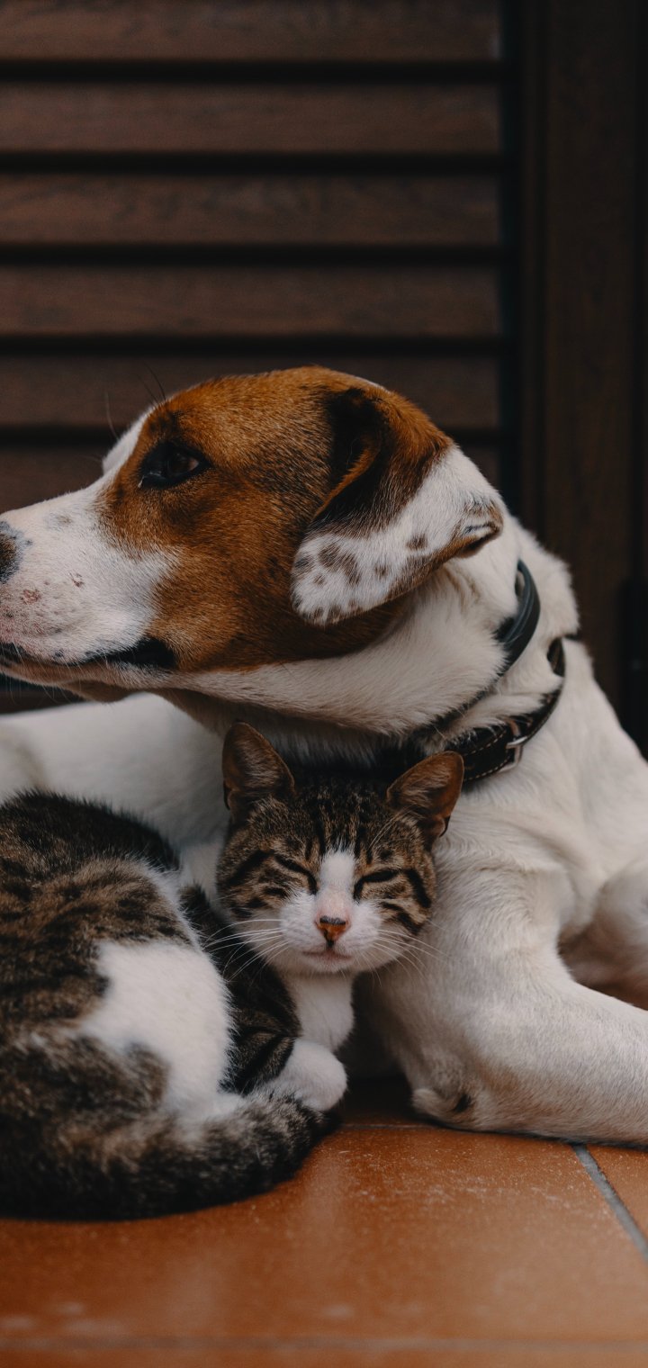 Обои: дружба, кот, собака - 720x1520
