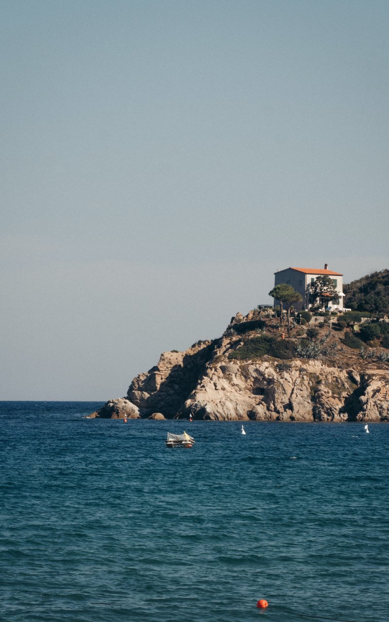 Обои: дом у моря, скалы - 800x1280