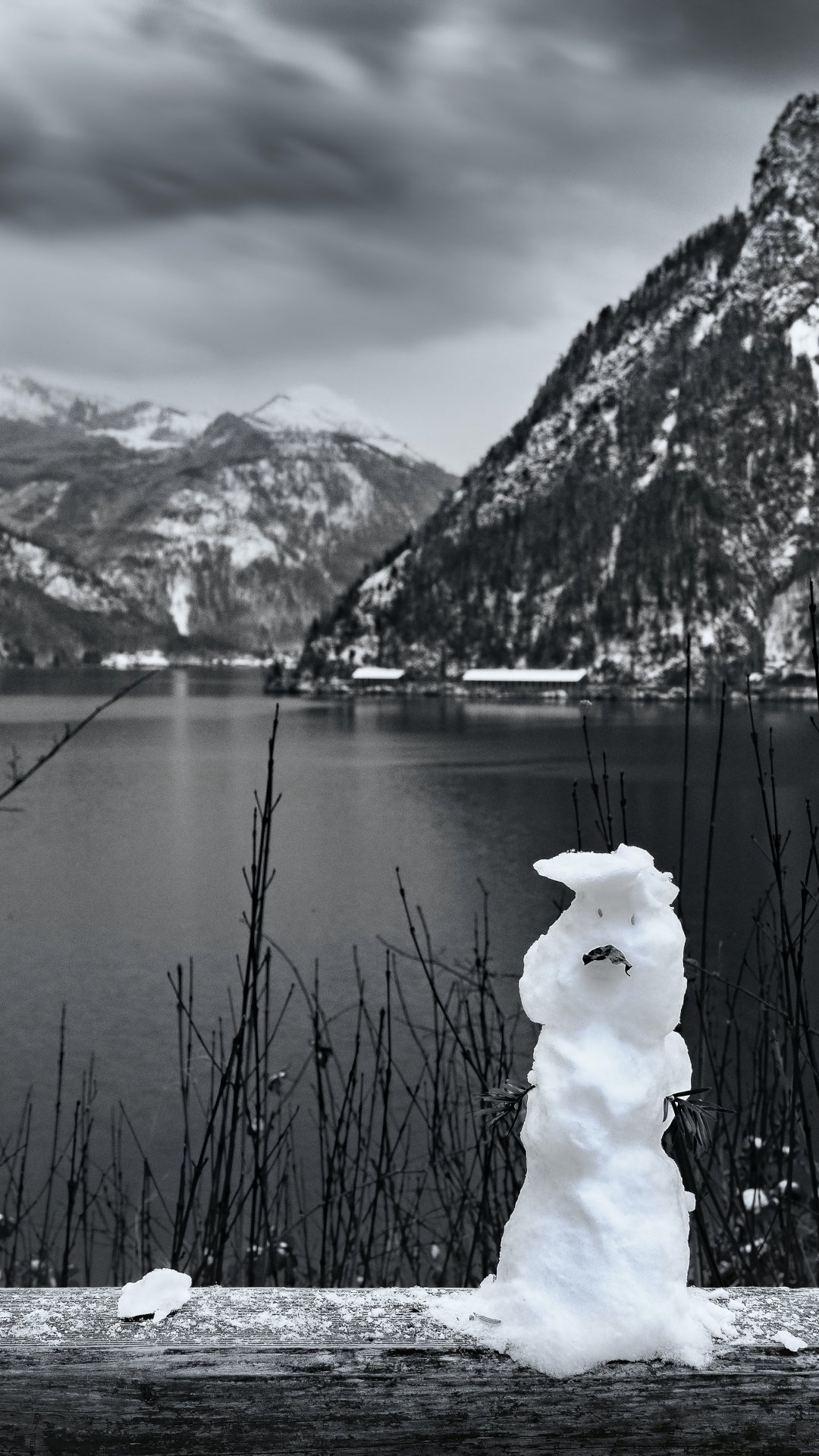 Обои: горы, озеро, снеговик - 1080x1920