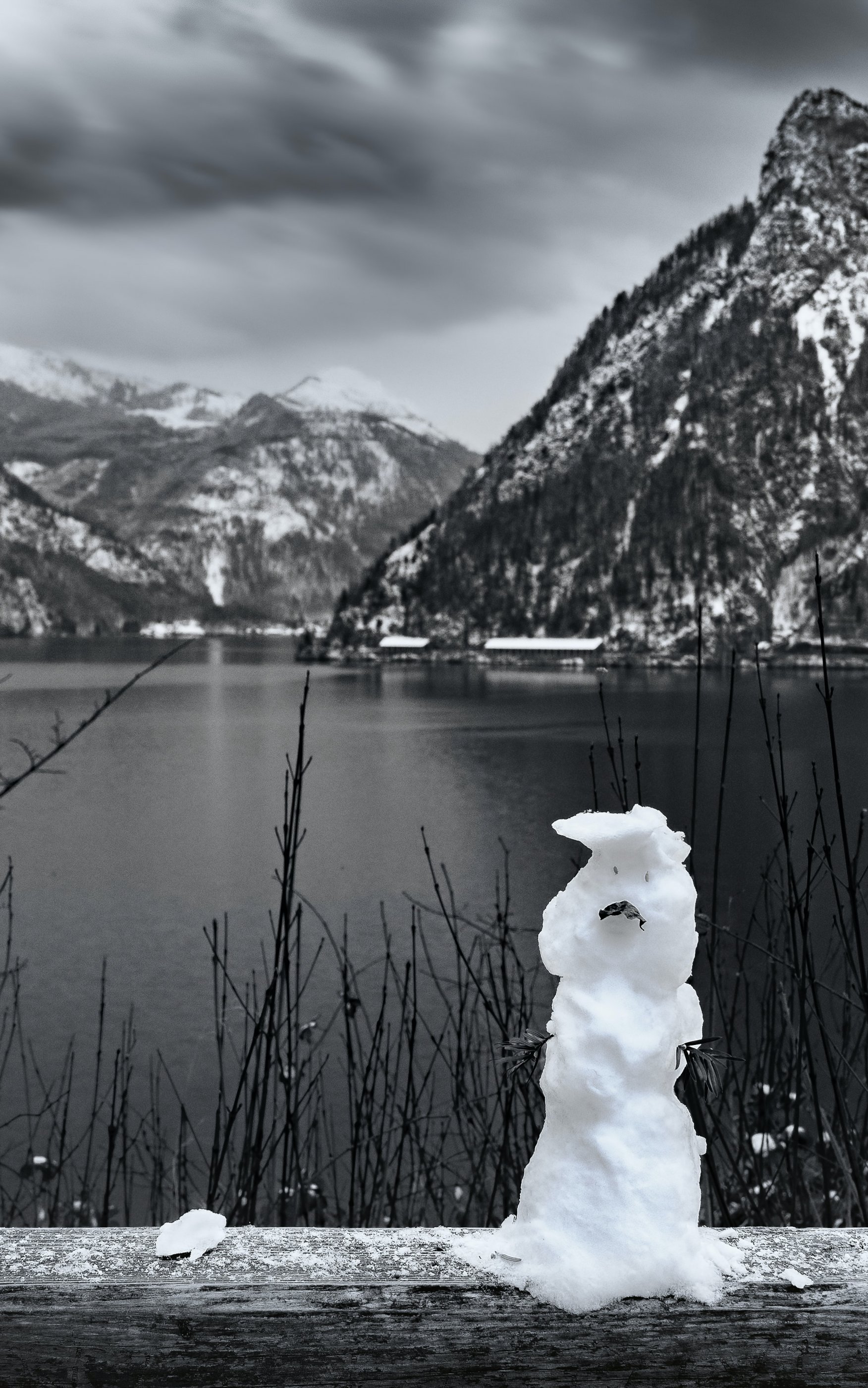 Обои: горы, озеро, снеговик - 1752x2800