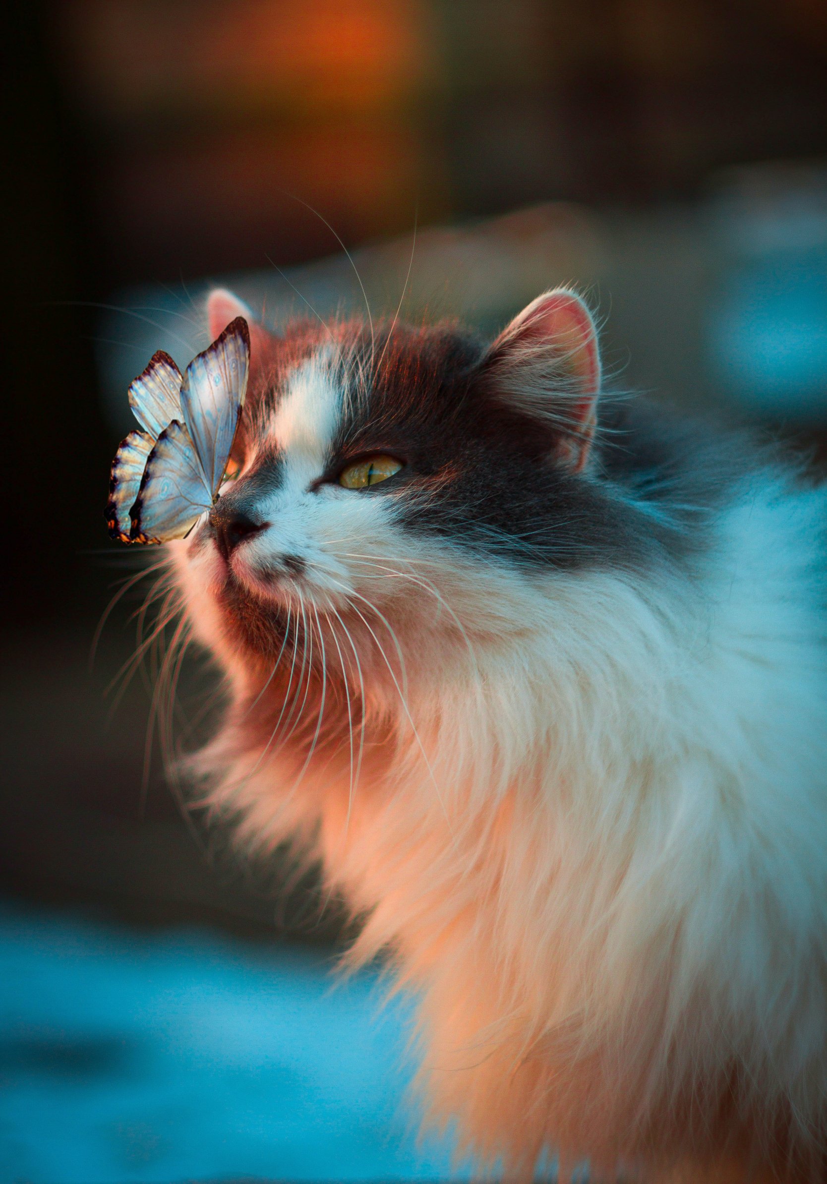 Обои: домашний питомец, кошка, бабочка - 1668x2388
