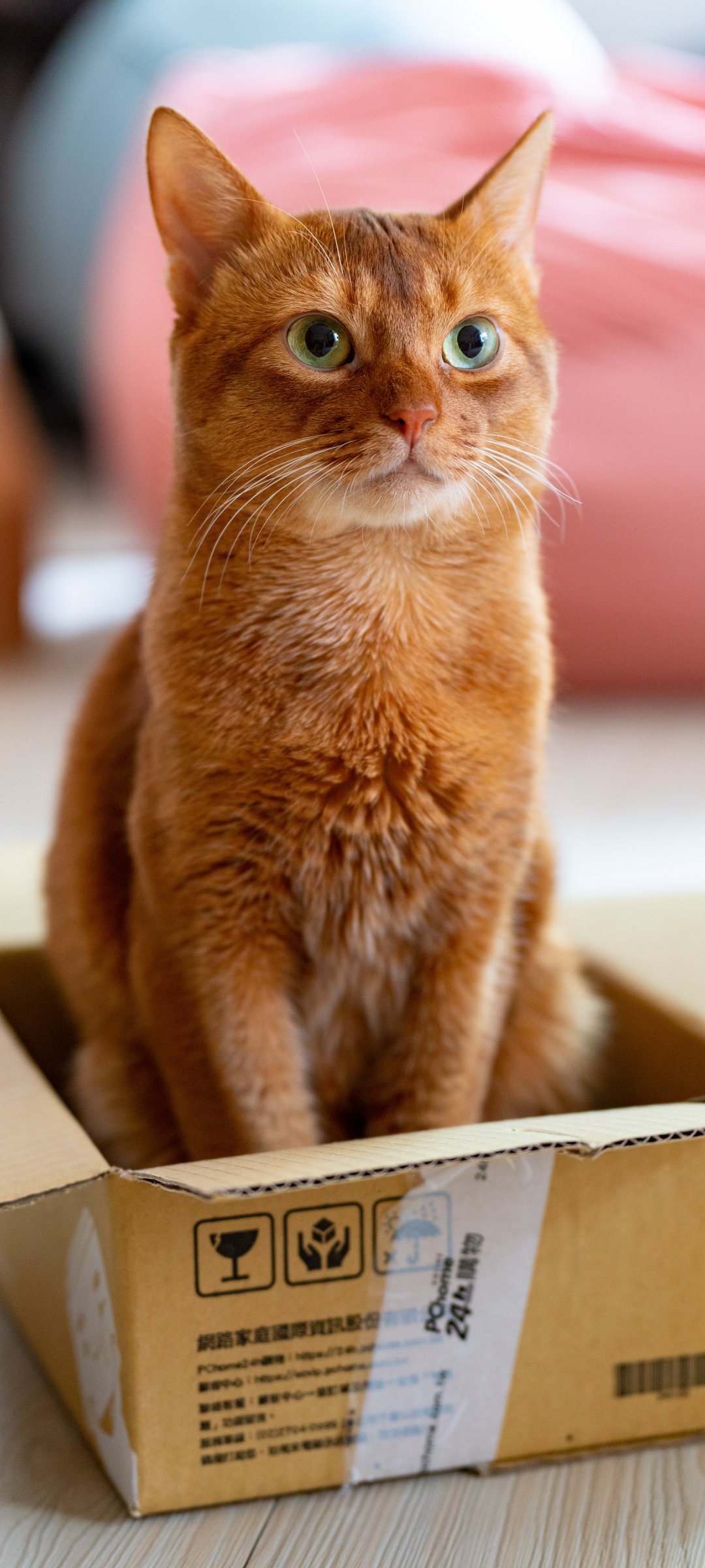 Обои: кошка, домашний питомец, коробка - 1080x2400