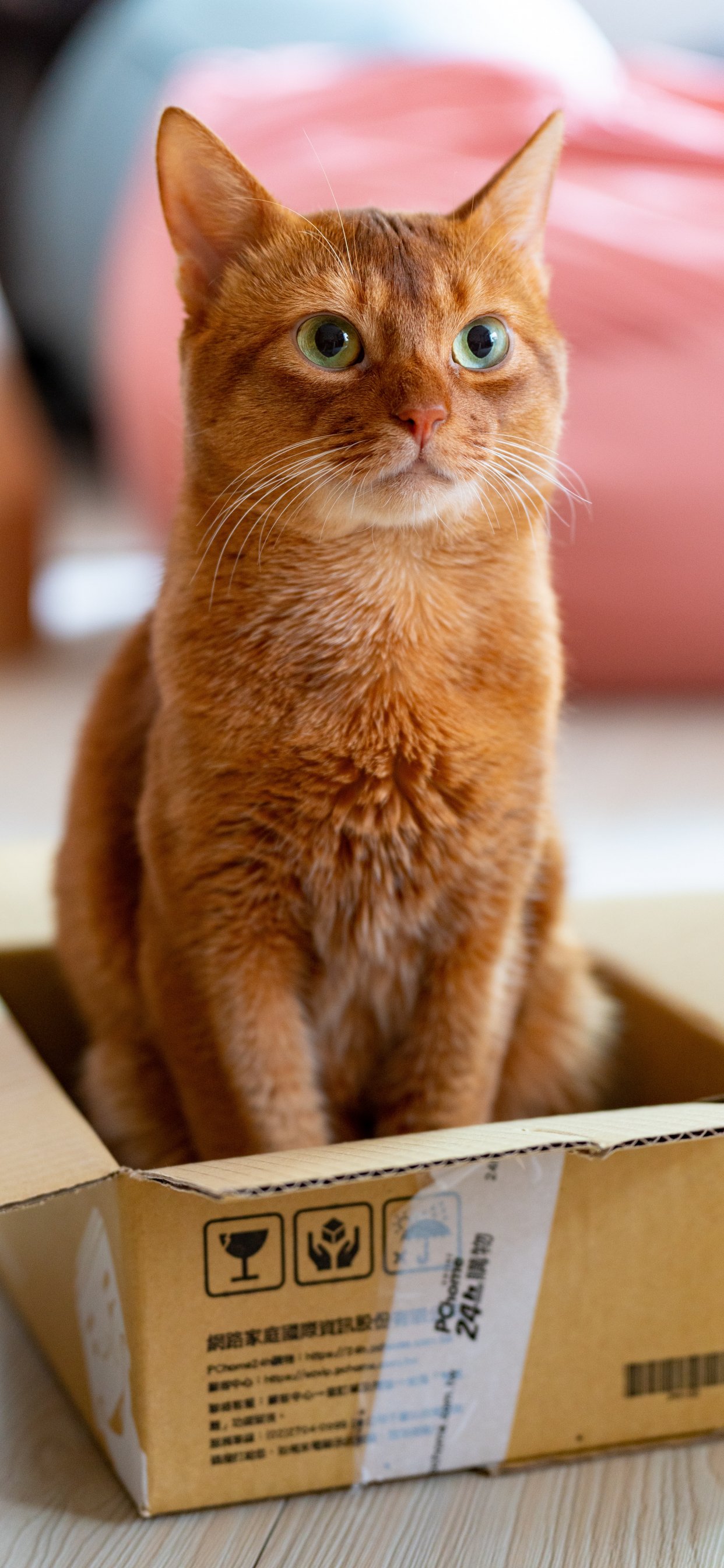 Обои: кошка, домашний питомец, коробка - 1242x2688