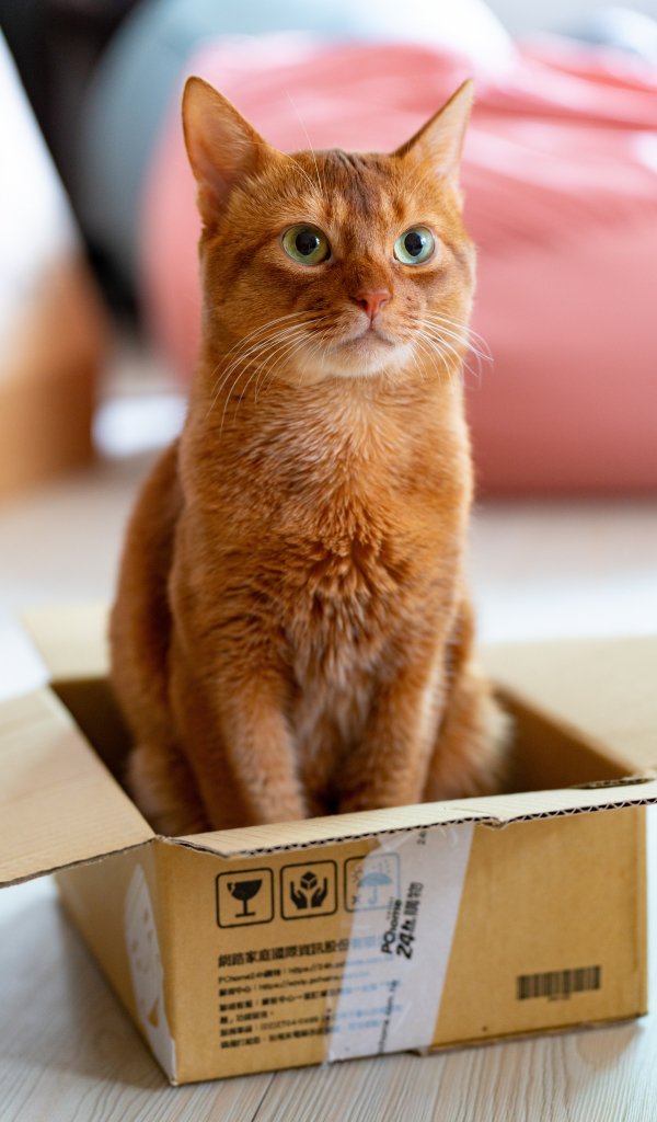 Обои: кошка, домашний питомец, коробка - 600x1024