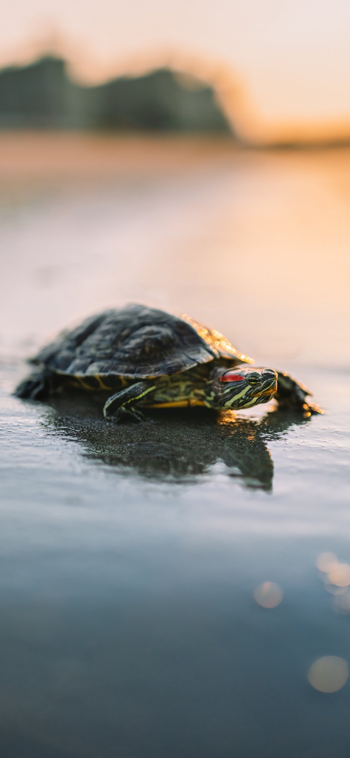 Обои: черепаха, песок, море, солнце - 1170x2532