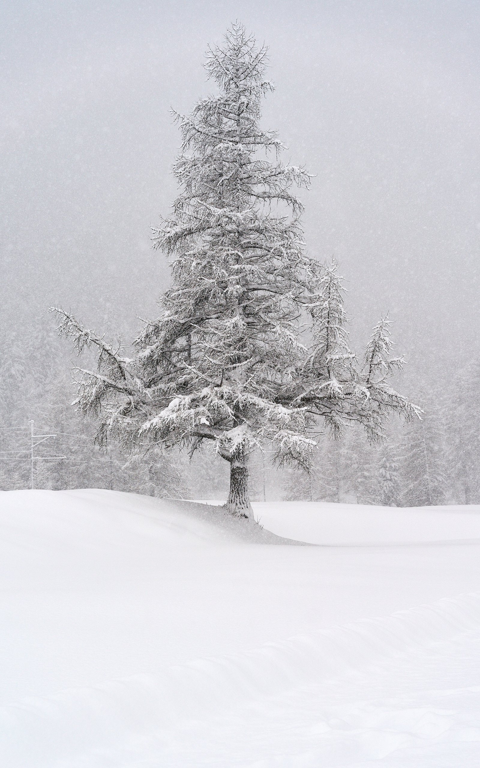 одинокое дерево, зима, белый