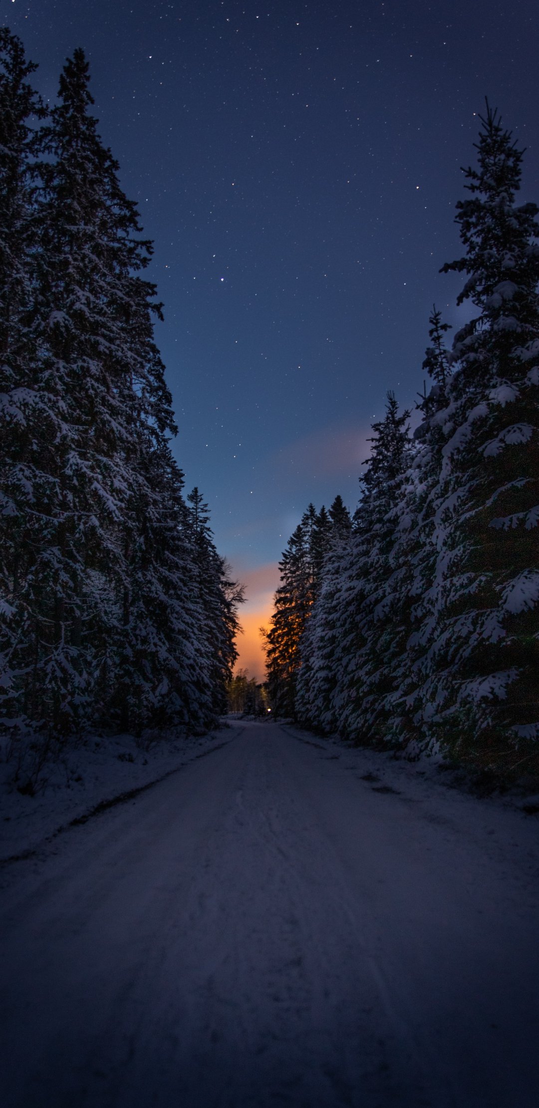 Обои: зимняя дорога, ночь - 1080x2220