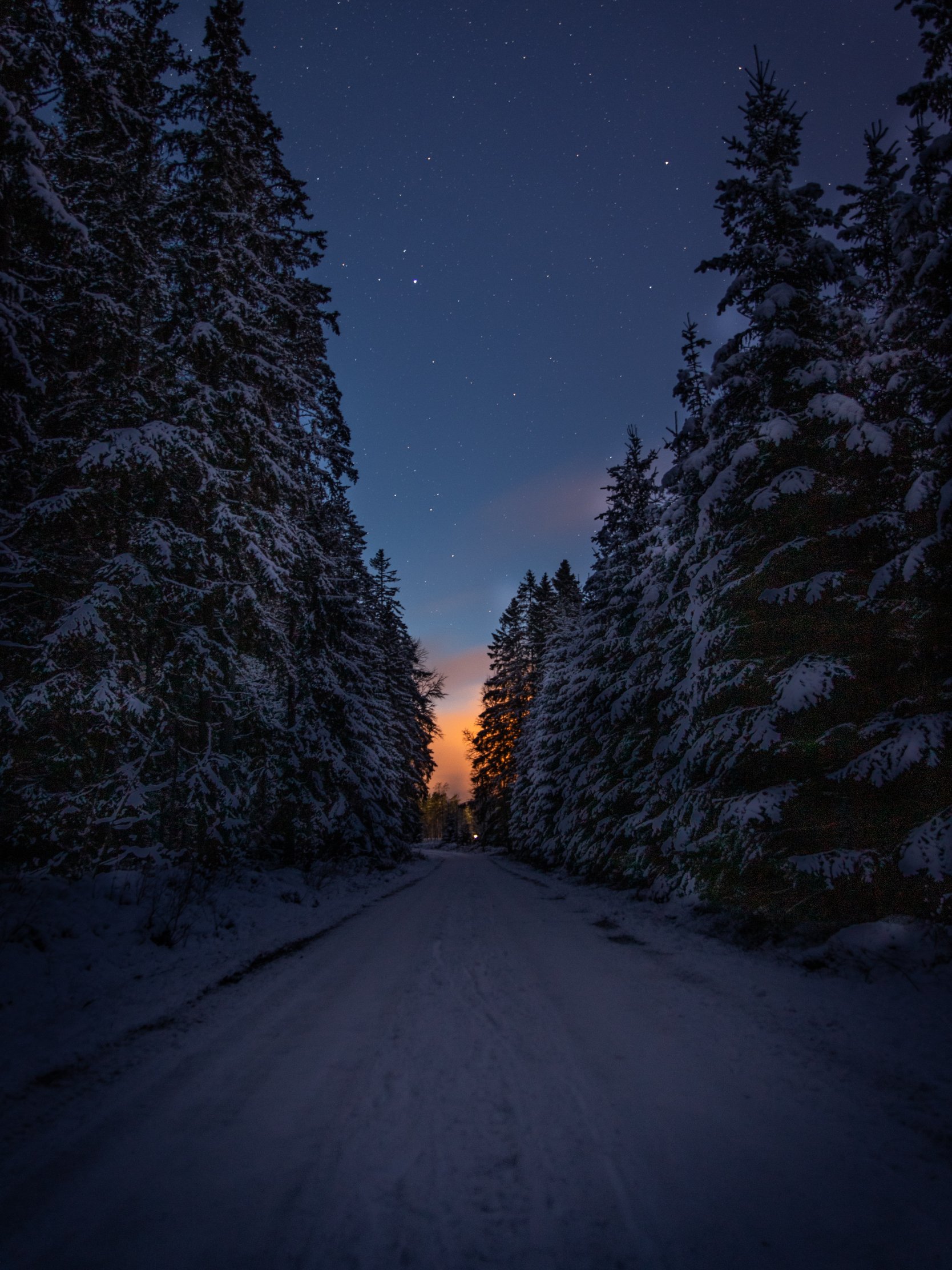 Обои: зимняя дорога, ночь - 1668x2224
