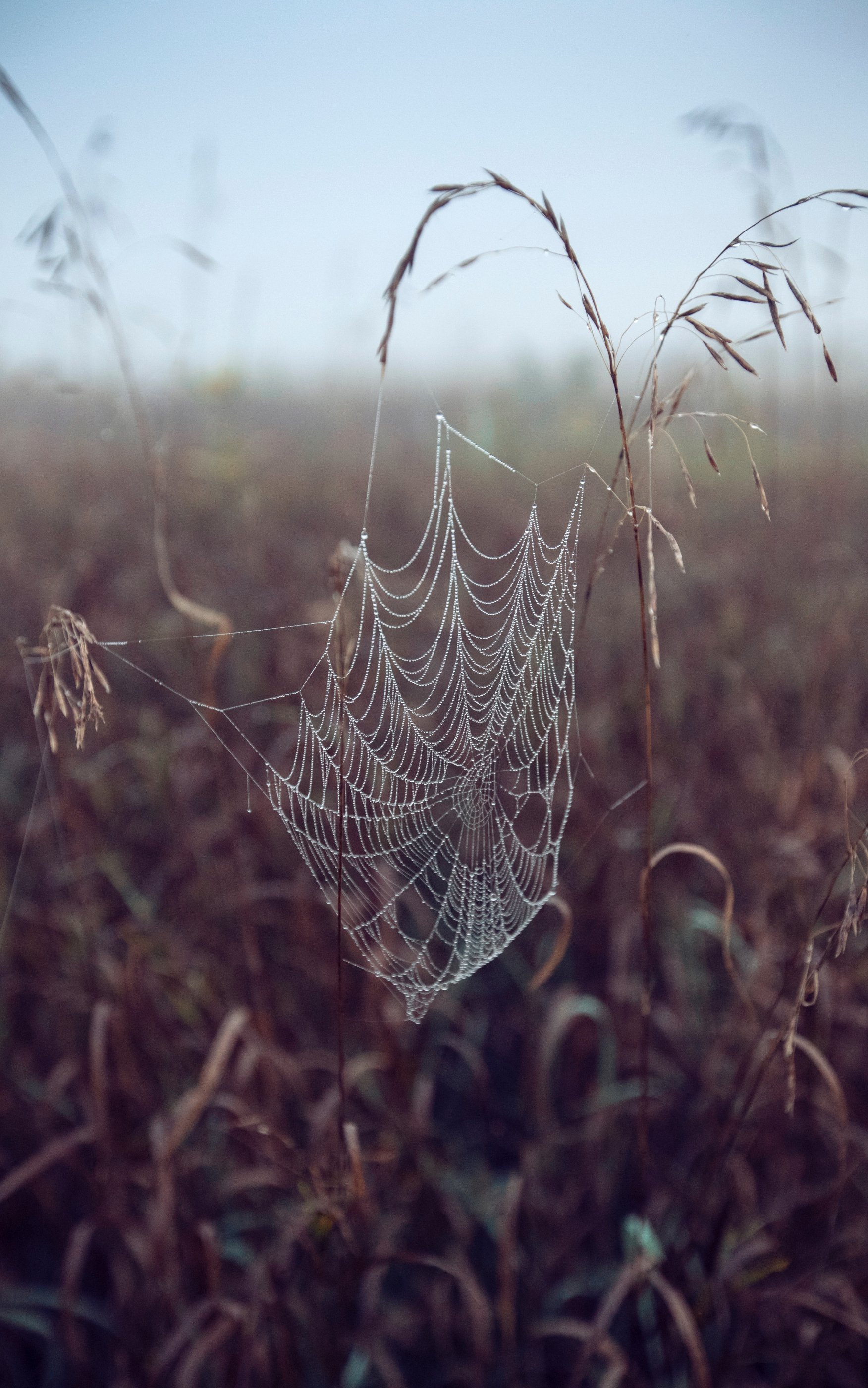Обои: паутина, поле, утро, роса - 1752x2800
