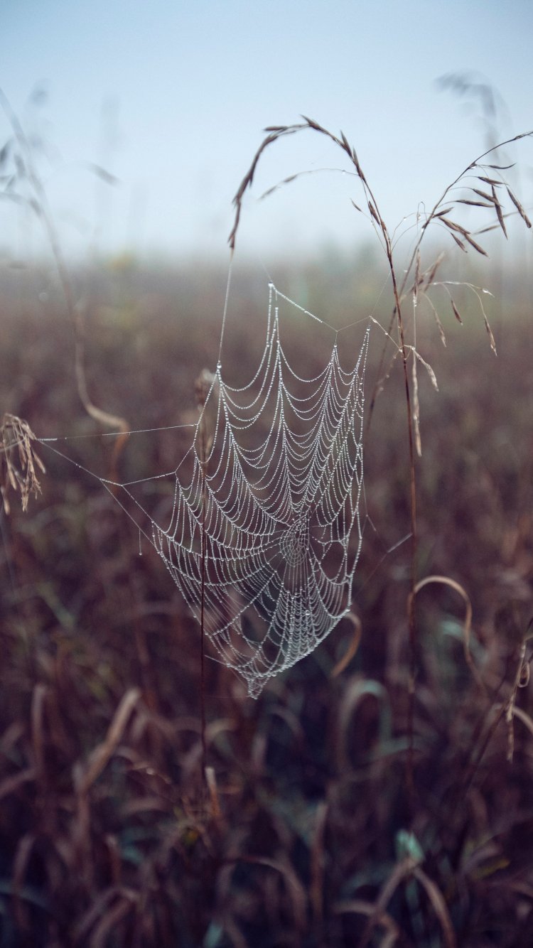 Обои: паутина, поле, утро, роса - 750x1334