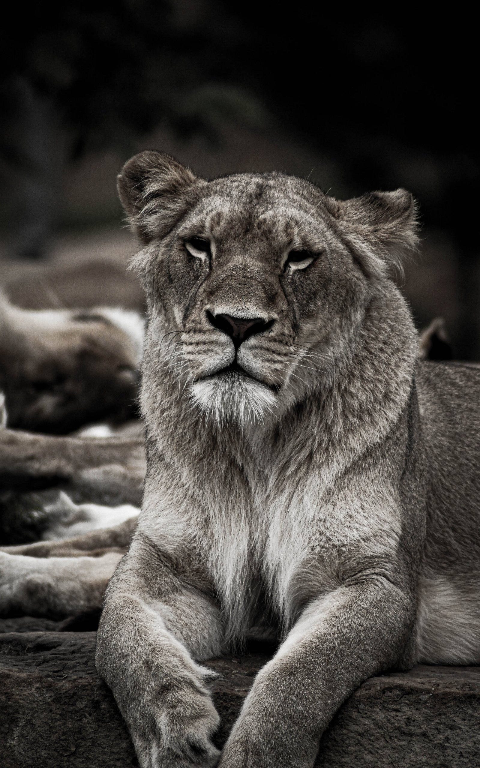 Обои: львица, ахроматично - 1600x2560