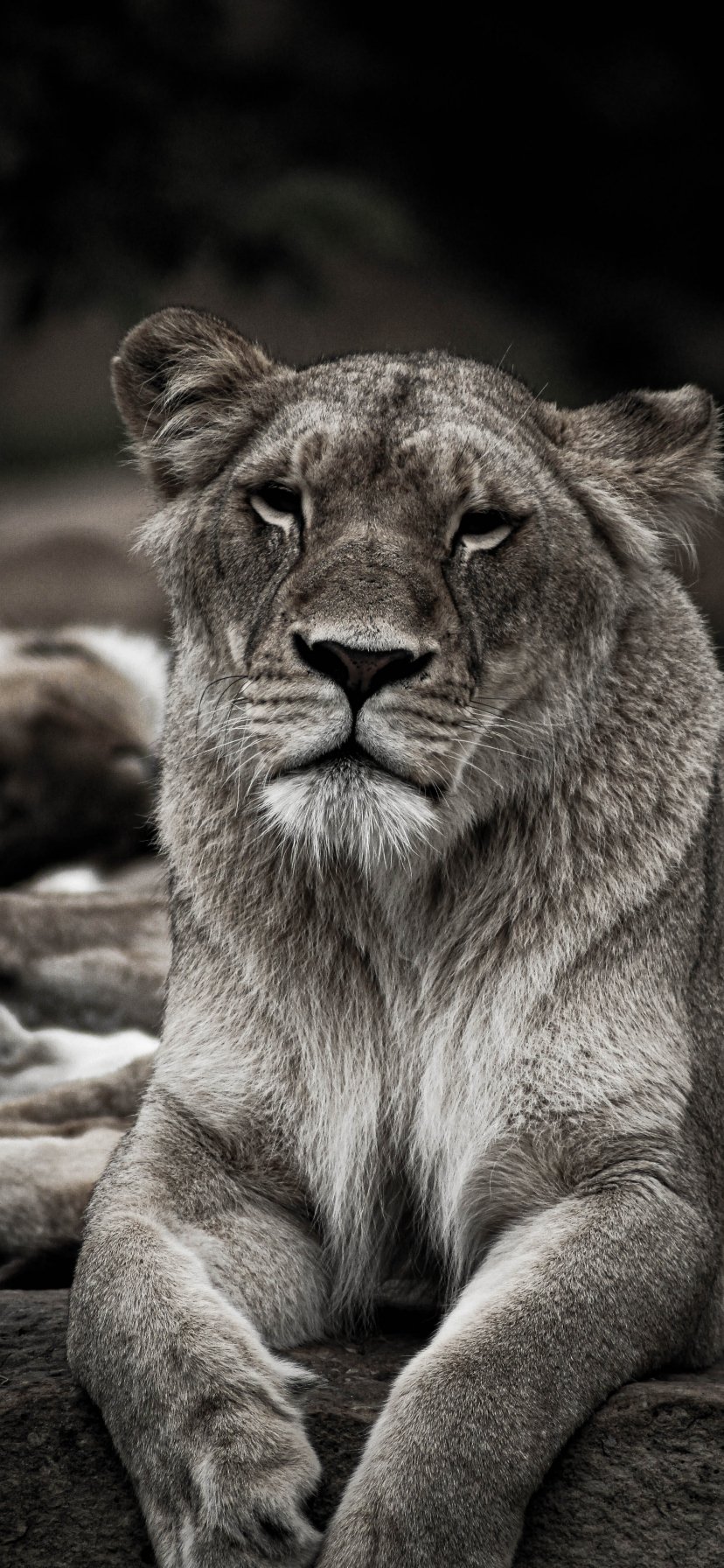 Обои: львица, ахроматично - 828x1792