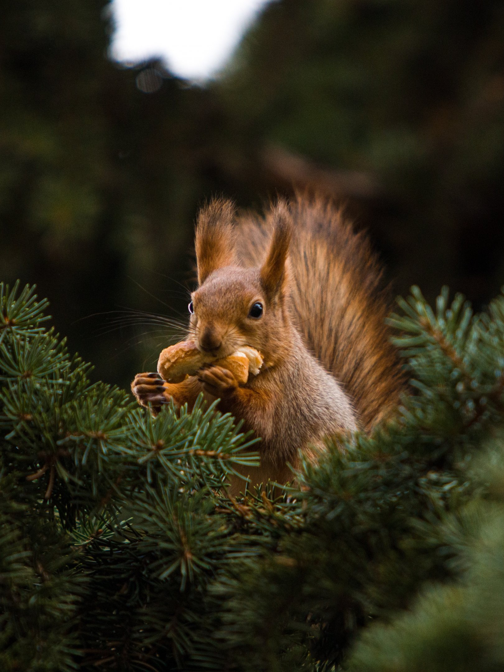Обои: белка, рыжий, ель - 1620x2160