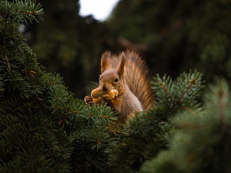 Обои: белка, рыжий, ель - 800x600