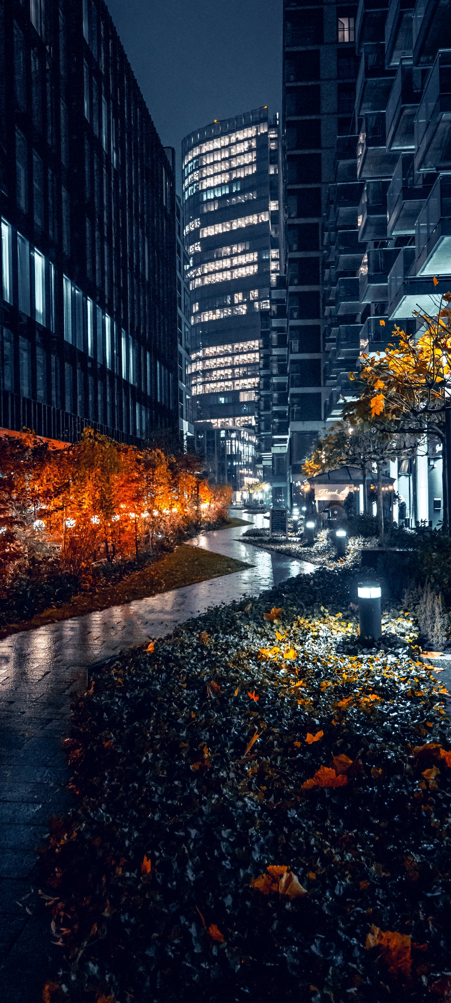 Обои: ночной город улочки города улицы города небоскребы - 1440x3200