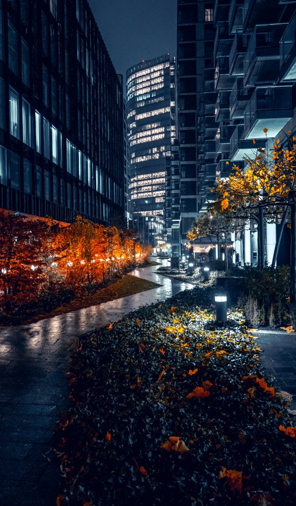 Обои: ночной город улочки города улицы города небоскребы - 600x1024