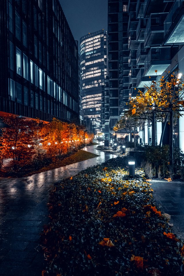Обои: ночной город улочки города улицы города небоскребы - 640x960