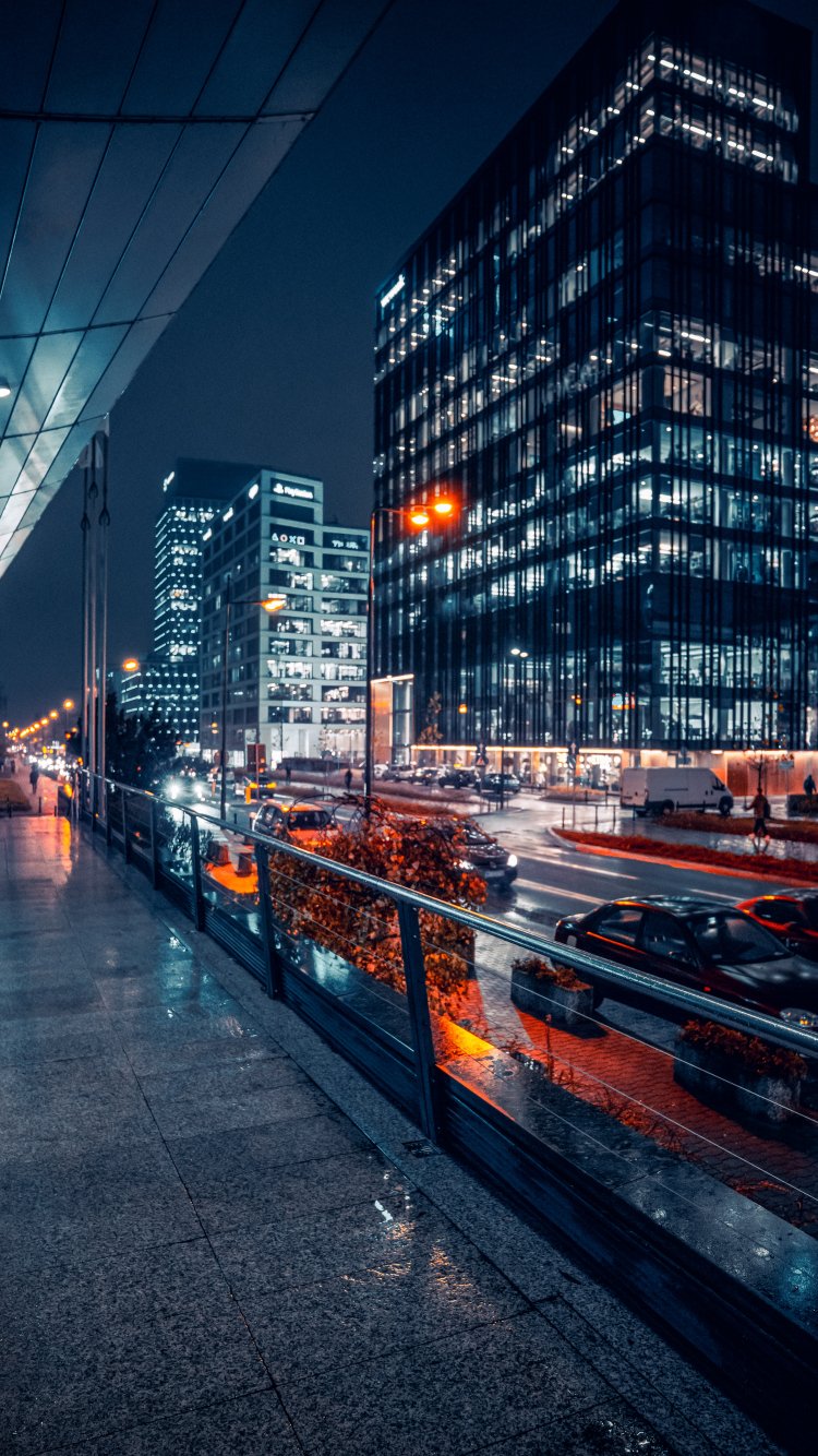 Обои: Варшава, Польша Варшава Польша уличная фотография архитектура современный город современная архитектура ночные огни большой город городской пейзаж город ночью ночь ночное фото ночной город дождливый день дождь Польша варшава строительство мегаполис Лондон строительство городской тротуар человек - 750x1334