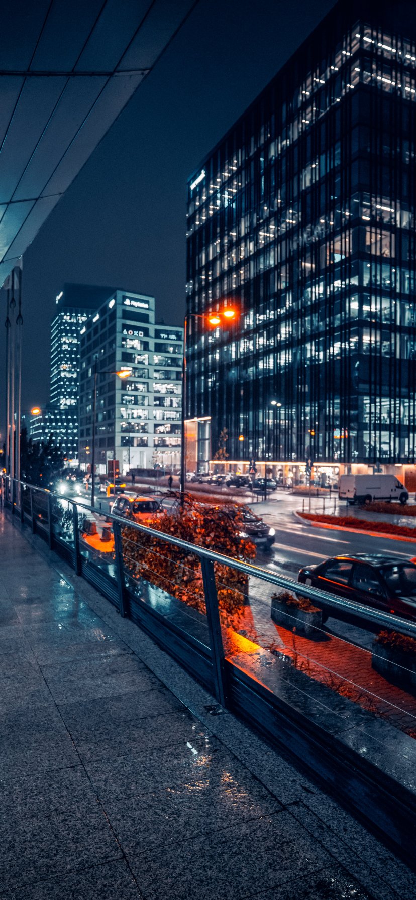 Обои: Варшава, Польша Варшава Польша уличная фотография архитектура современный город современная архитектура ночные огни большой город городской пейзаж город ночью ночь ночное фото ночной город дождливый день дождь Польша варшава строительство мегаполис Лондон строительство городской тротуар человек - 828x1792