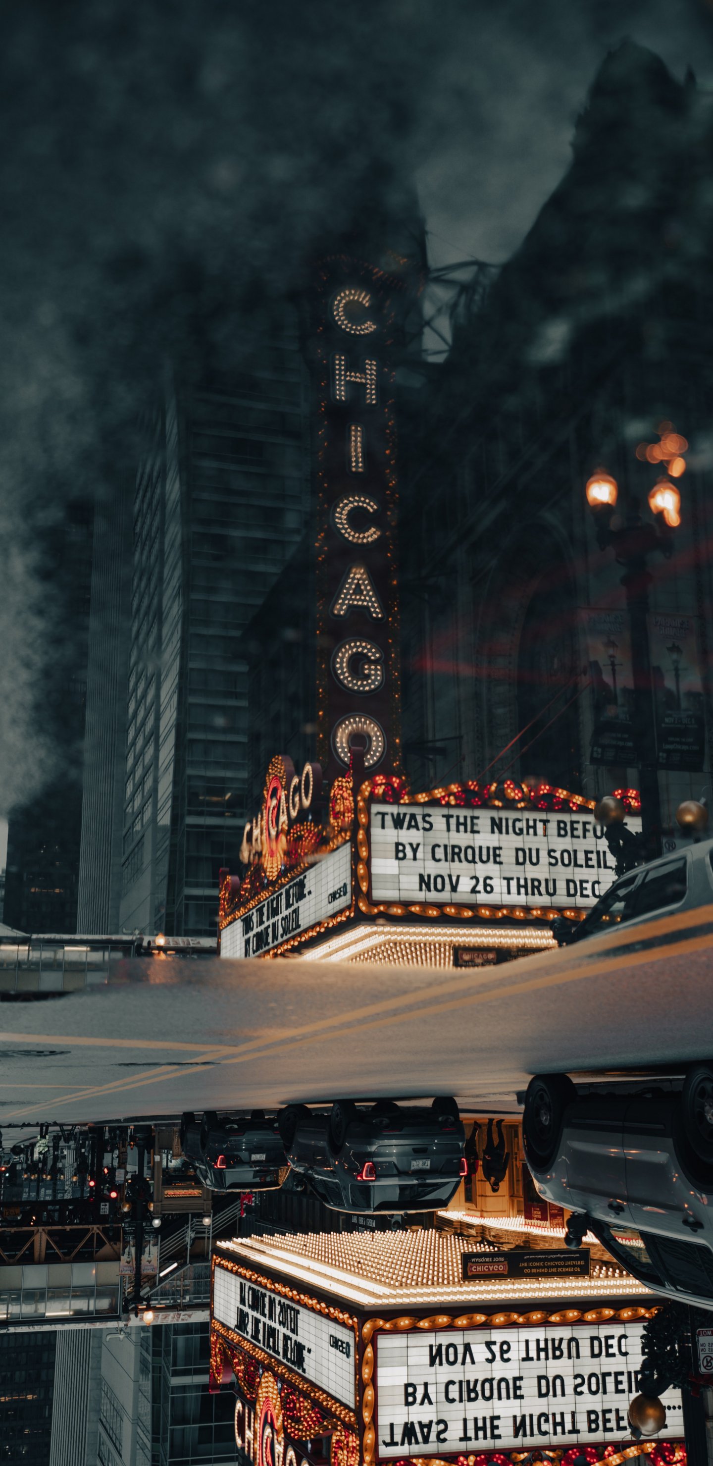 Обои: уличная фотография театр улица лужа отражение мегаполис город офисное здание центр города Чикаго - 1440x2960