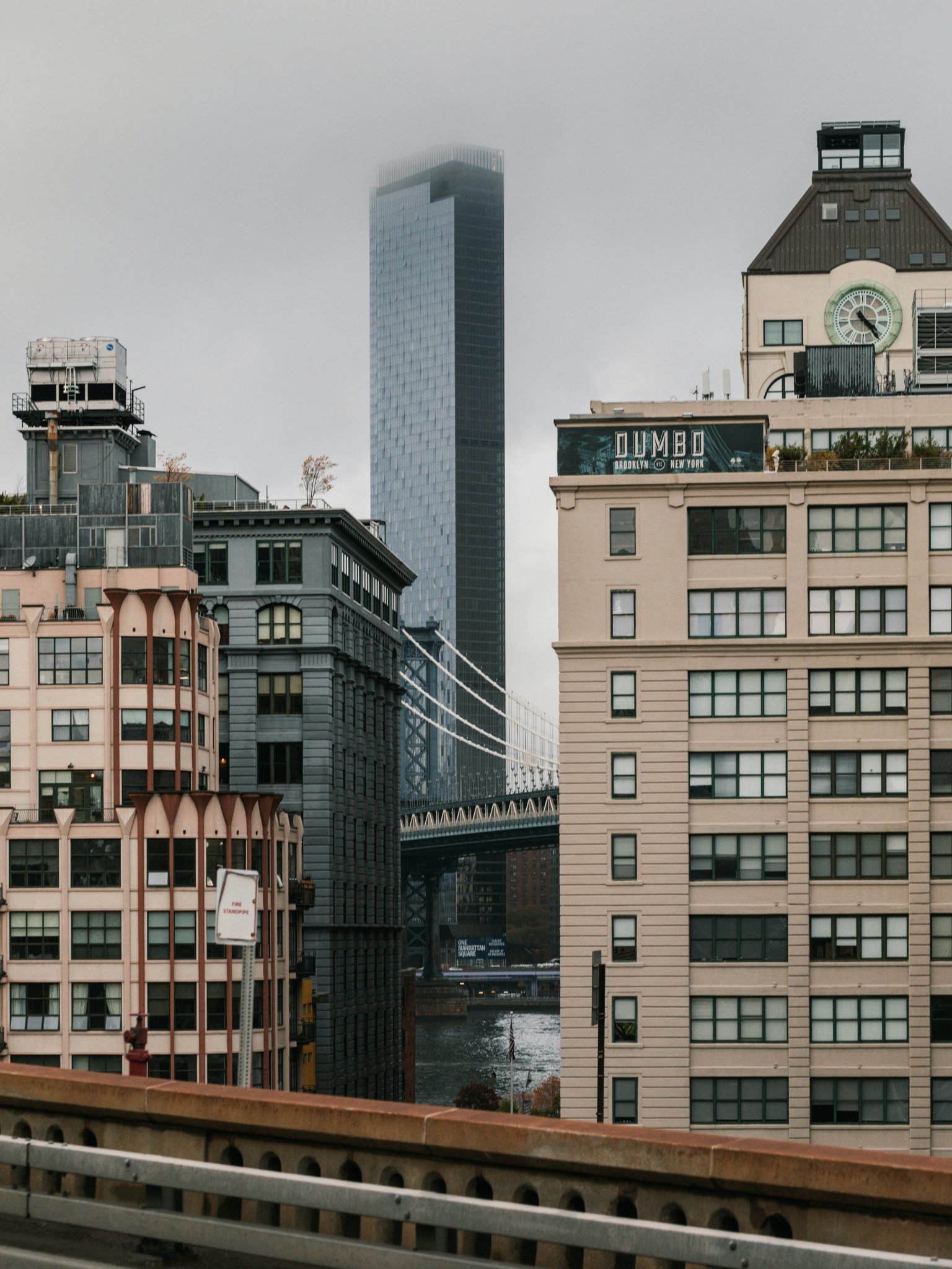 Обои: Дамбо, Бруклин, Нью-Йорк, США Дамбо Бруклин новый Соединенные Штаты Америки уличная фотография Дамбо Бруклин туманный недвижимость описание мост дамбо туман архитектурный Манхэттенский мост небоскреб город - 1536x2048