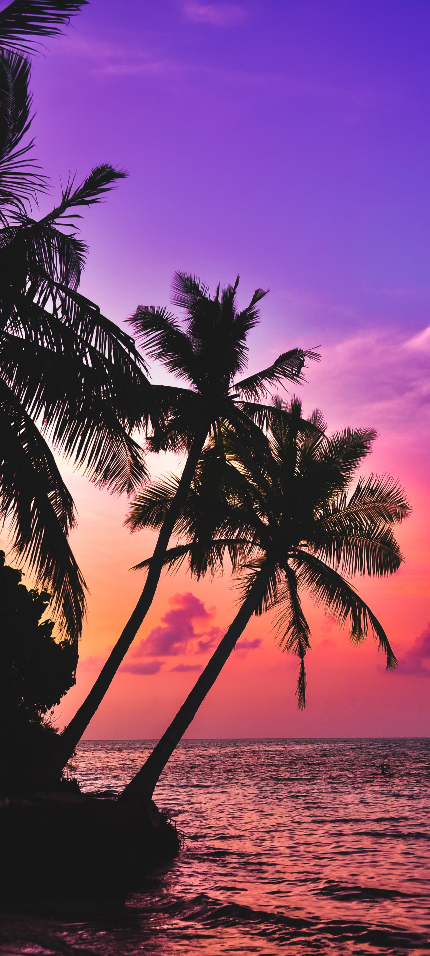 Обои: Мальдивы, пальмы, закат - 1440x3200