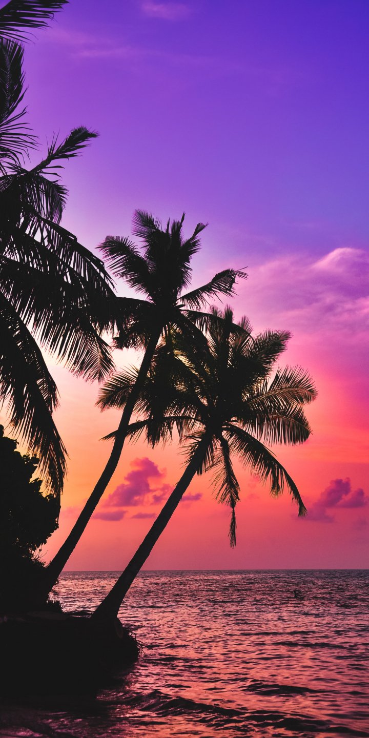 Обои: Мальдивы, пальмы, закат - 720x1440