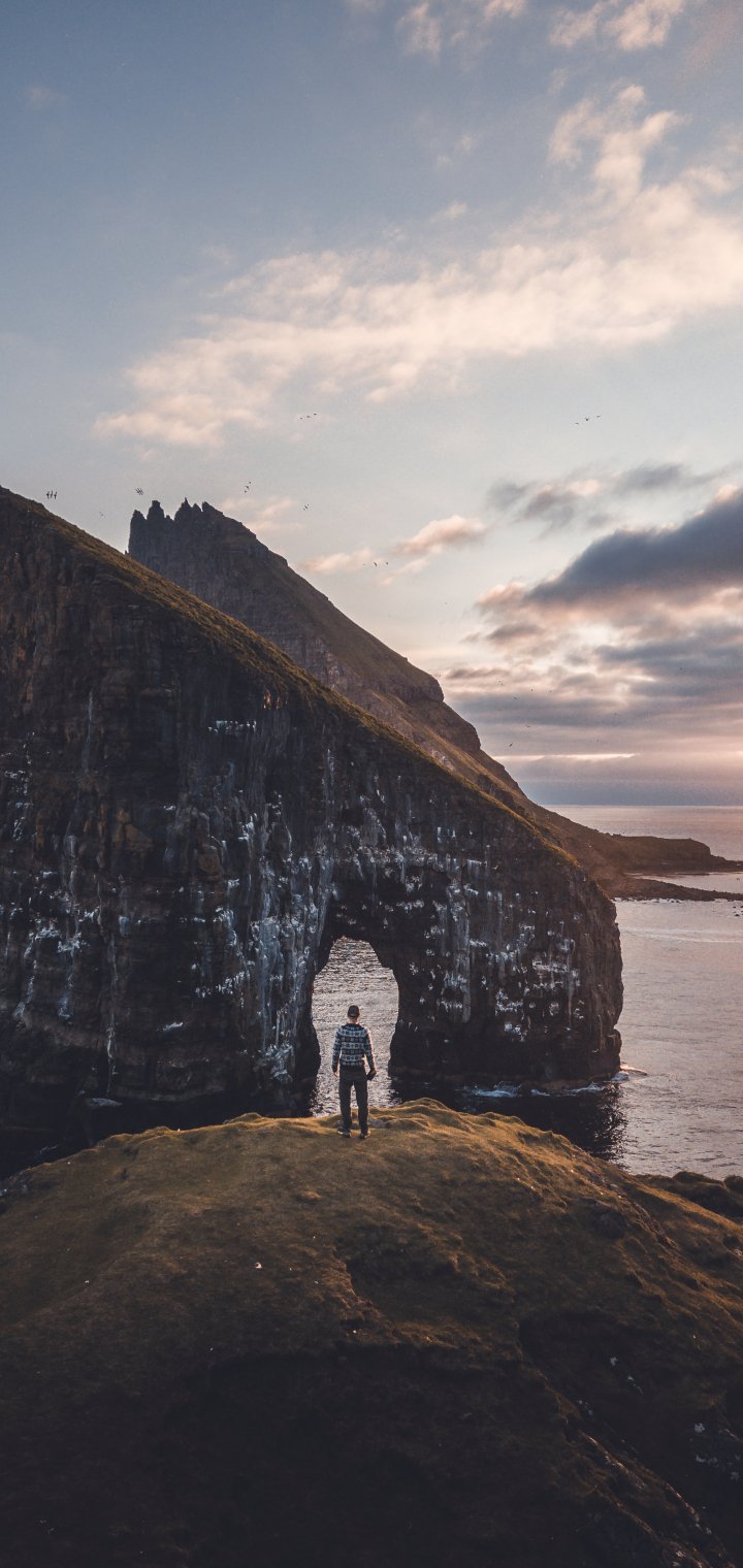 Обои: Дрангарнир, Фарерские острова дрангарнир Фарерские острова на открытом воздухе горы и море скалы горные породы должен фарер приключение - 720x1520