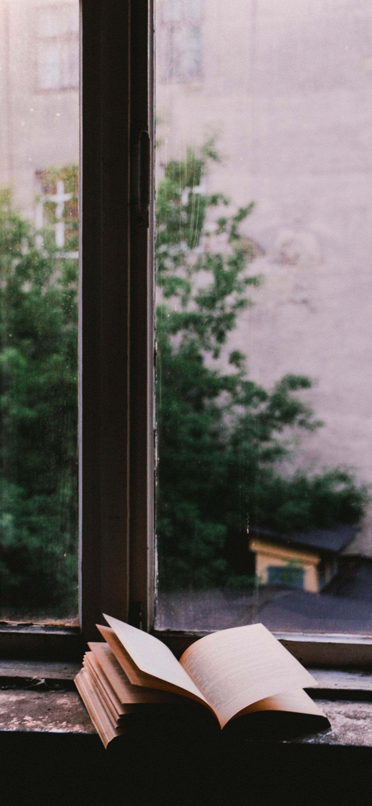 Обои: книга, вид из окна, мысли, минимализм - 1242x2688