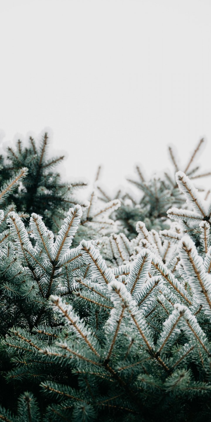 Обои: зима, ветки, ель, снег - 720x1440