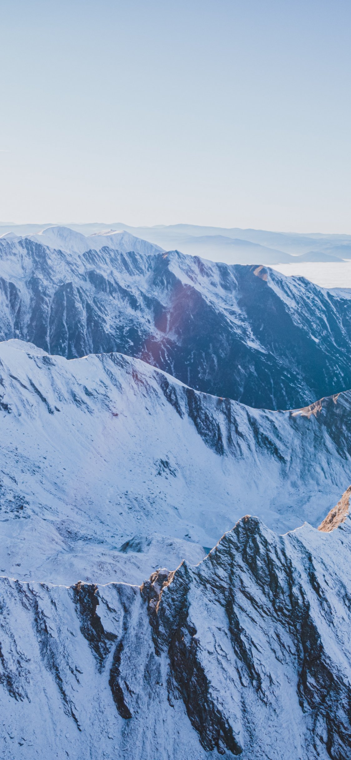 Обои: снег в горах, горы, зима, вид с дрона - 1125x2436