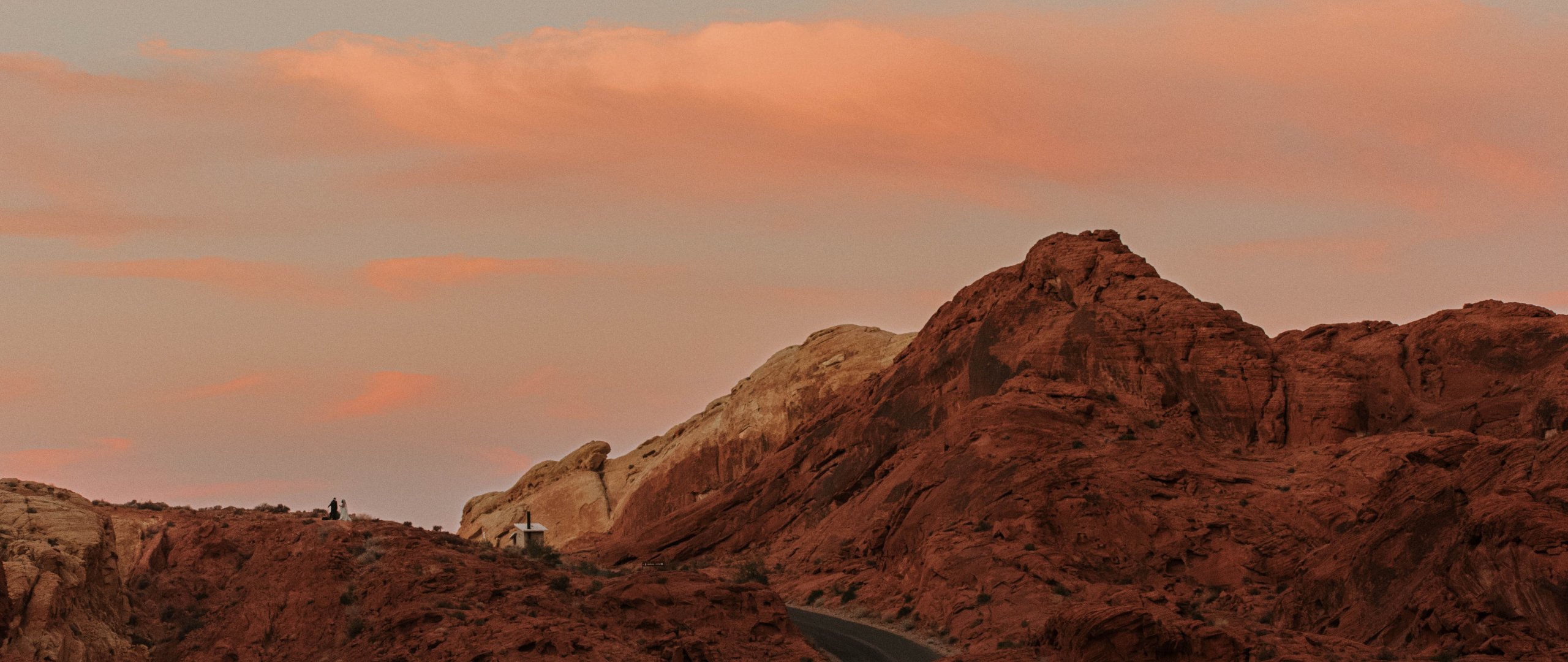 Обои: дорога, горы, восход солнца, утро - 2560x1080