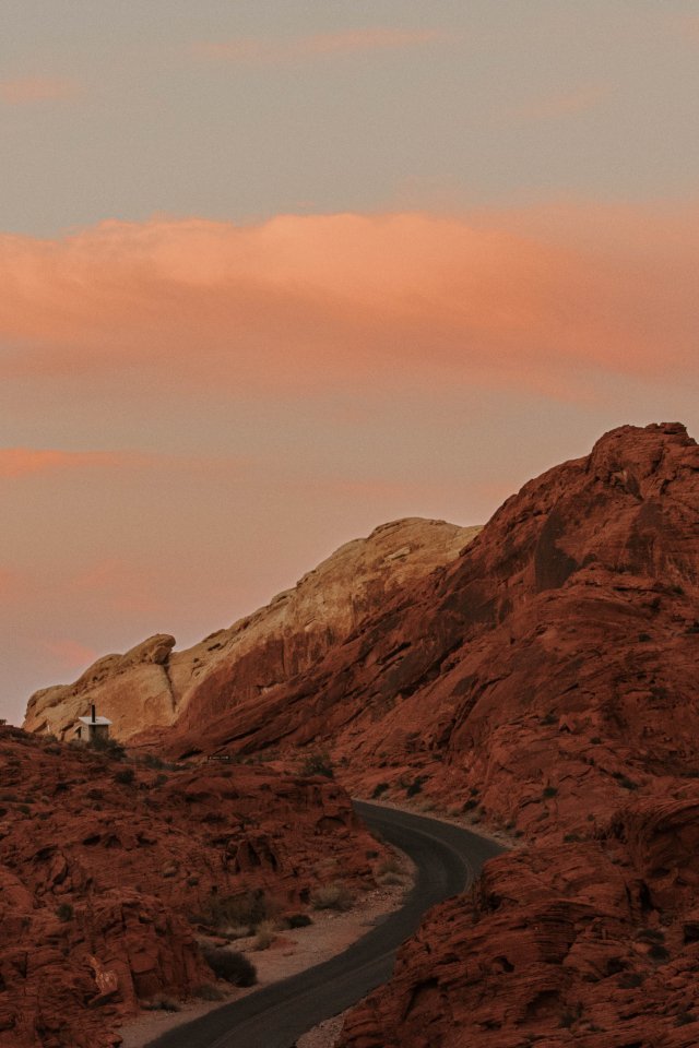 Обои: дорога, горы, восход солнца, утро - 640x960