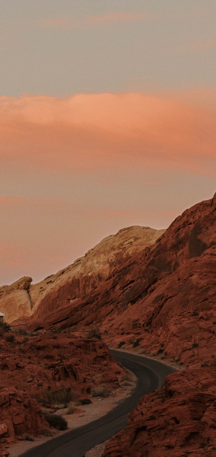 Обои: дорога, горы, восход солнца, утро - 720x1520